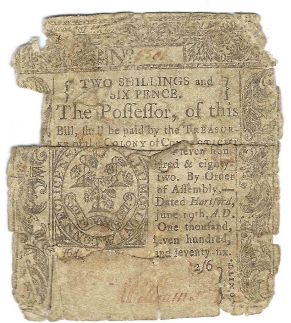 2sh 6p | Colonial Currency | Connecticut, January 2, 1775 | S494 | Fine | $300.00 | |||||