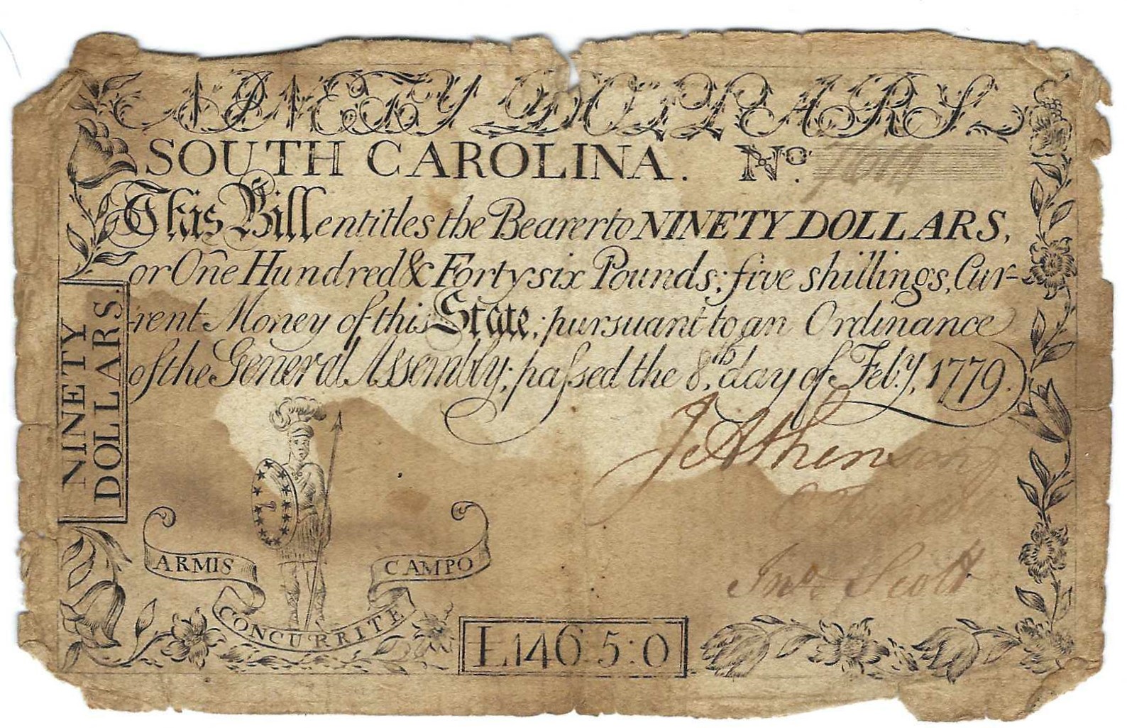 | 1779 | 676 S | $90.00 | Colonial Currency | South Carolina Feb. 8, 1779 | 7614 | SC-158 | HKMEX | $450.00 | ||||
