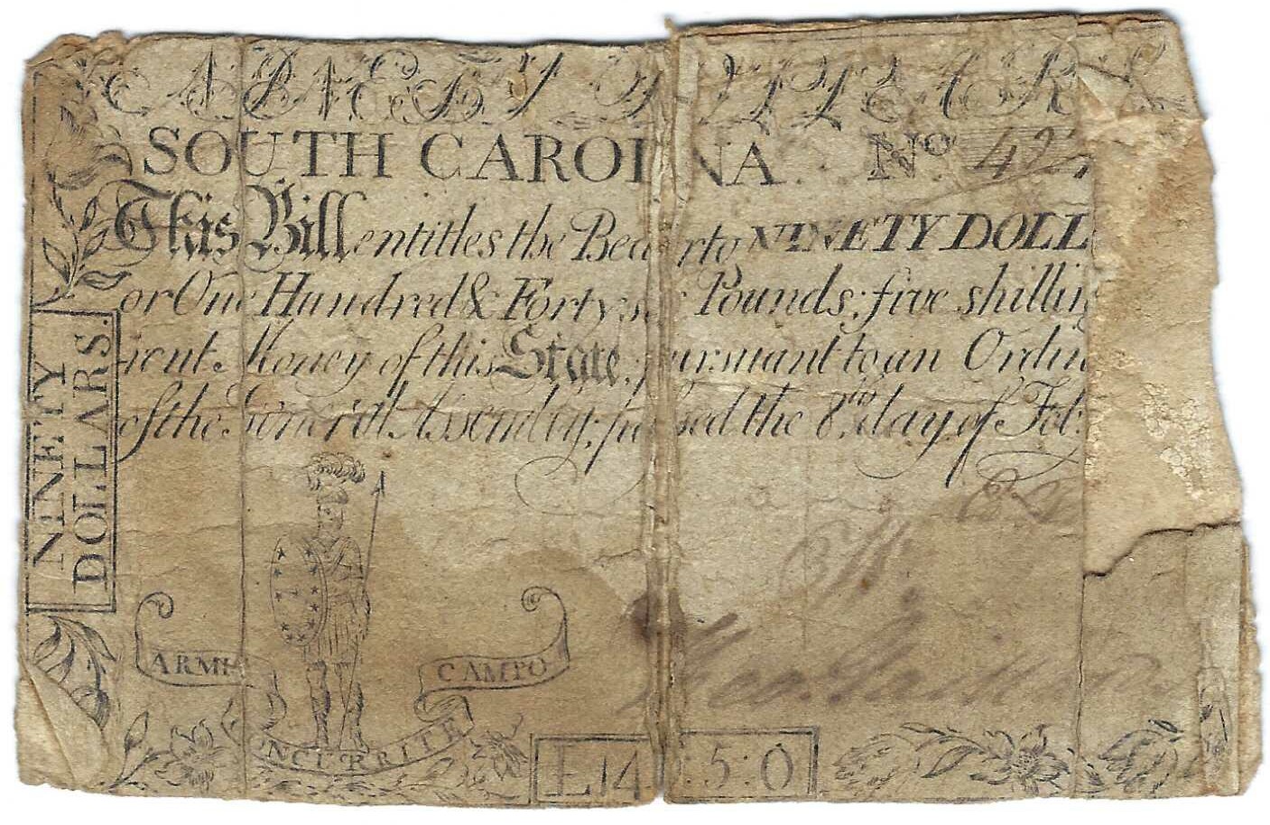 $90.00 | Colonial Currency | South Carolina Feb. 8, 1779 | 427 | SC-158 | BLMEX | $200.00 | ||||