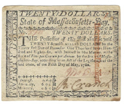1780 | 7948 S | $20.00 | Colonial Currency | Massachusetts, May 5, 1780 | 25948 | MA-285 | PHC Uncirculated | $175.00 | ||