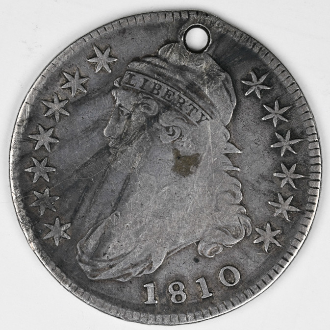| 96001 R | 1810 | Capped Bust Half Dollar | Holed | $35.00 | |||