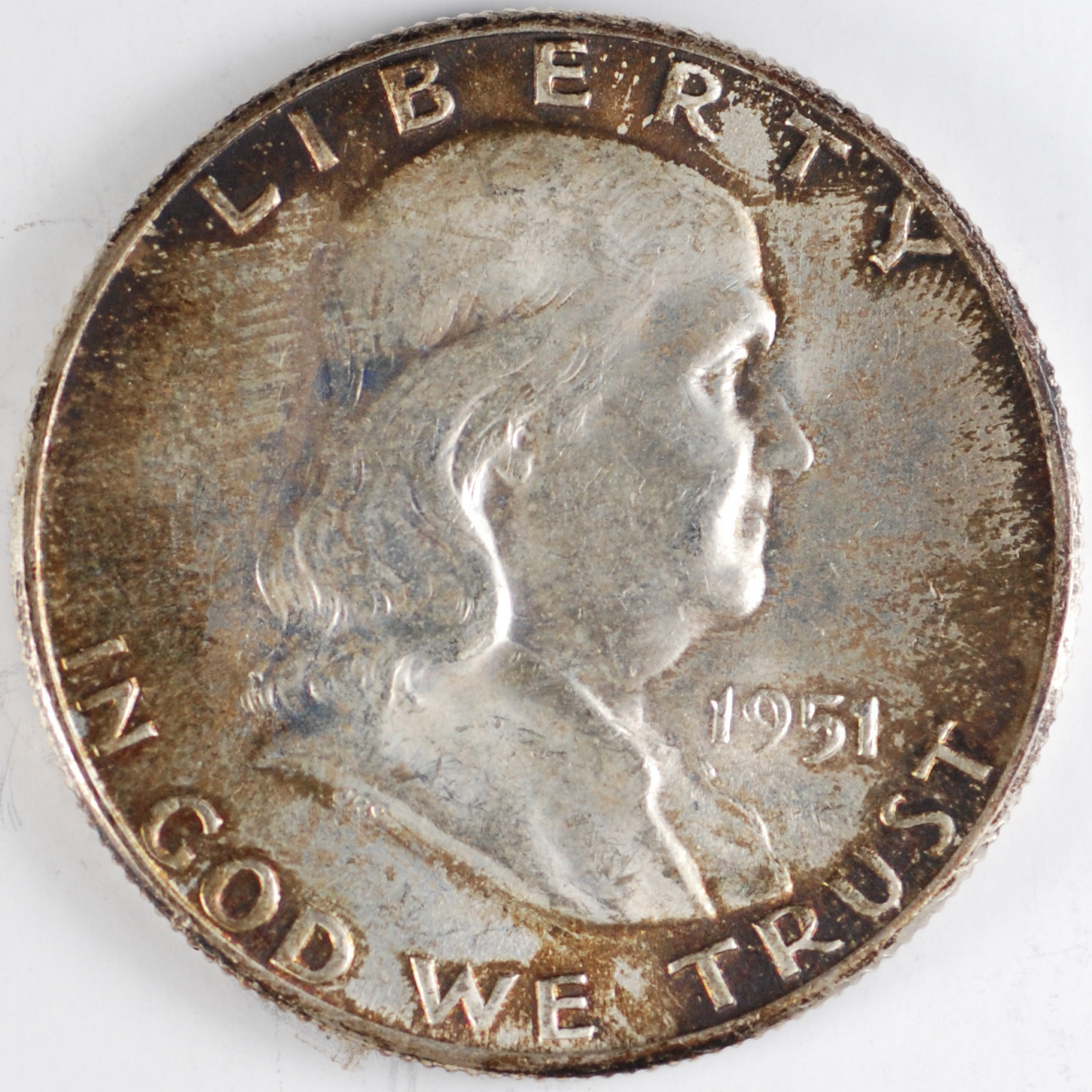 1951 | Franklin Half Dollar | End of Roll Toning, Obverse | MS-64 ERT | $50.00 | ||