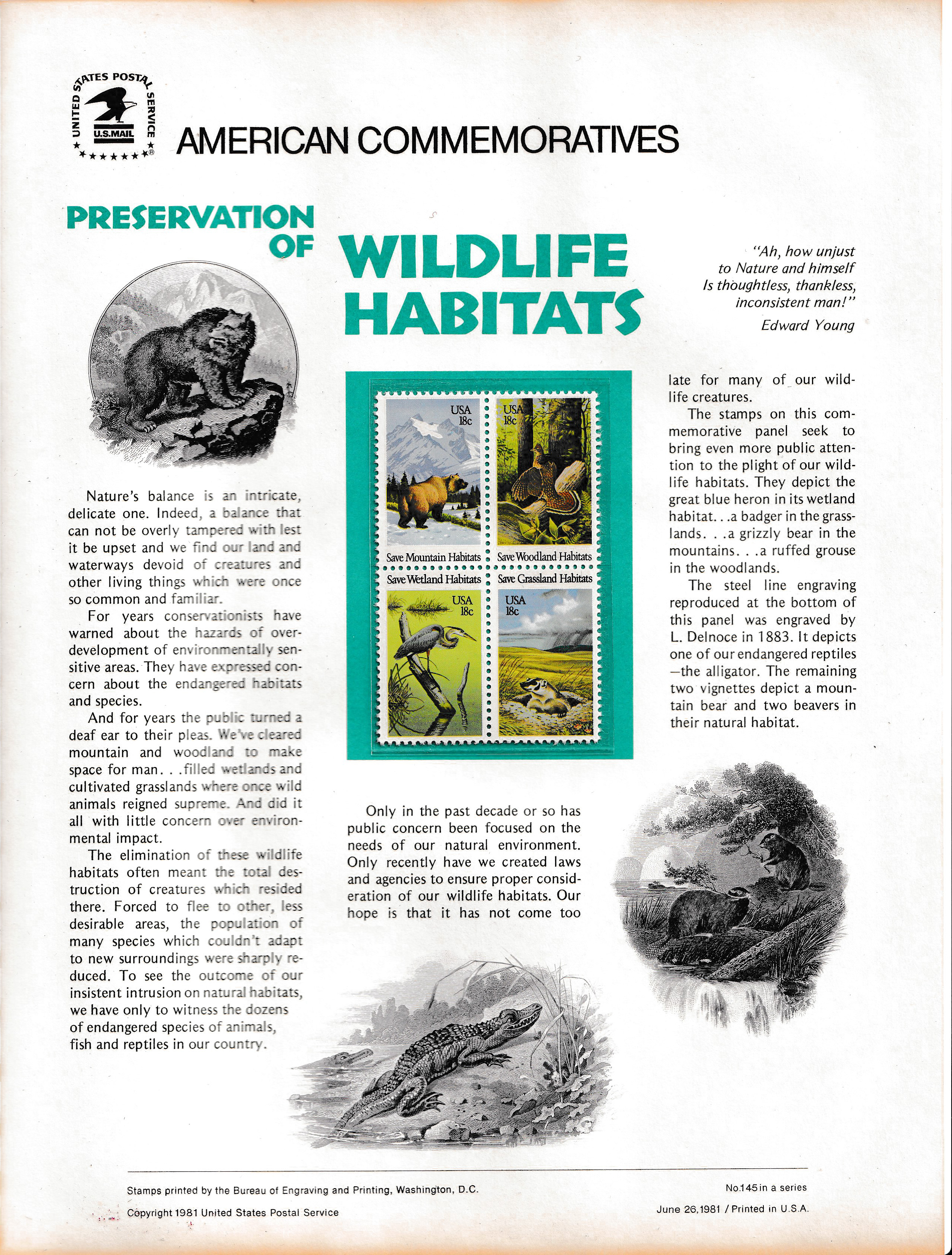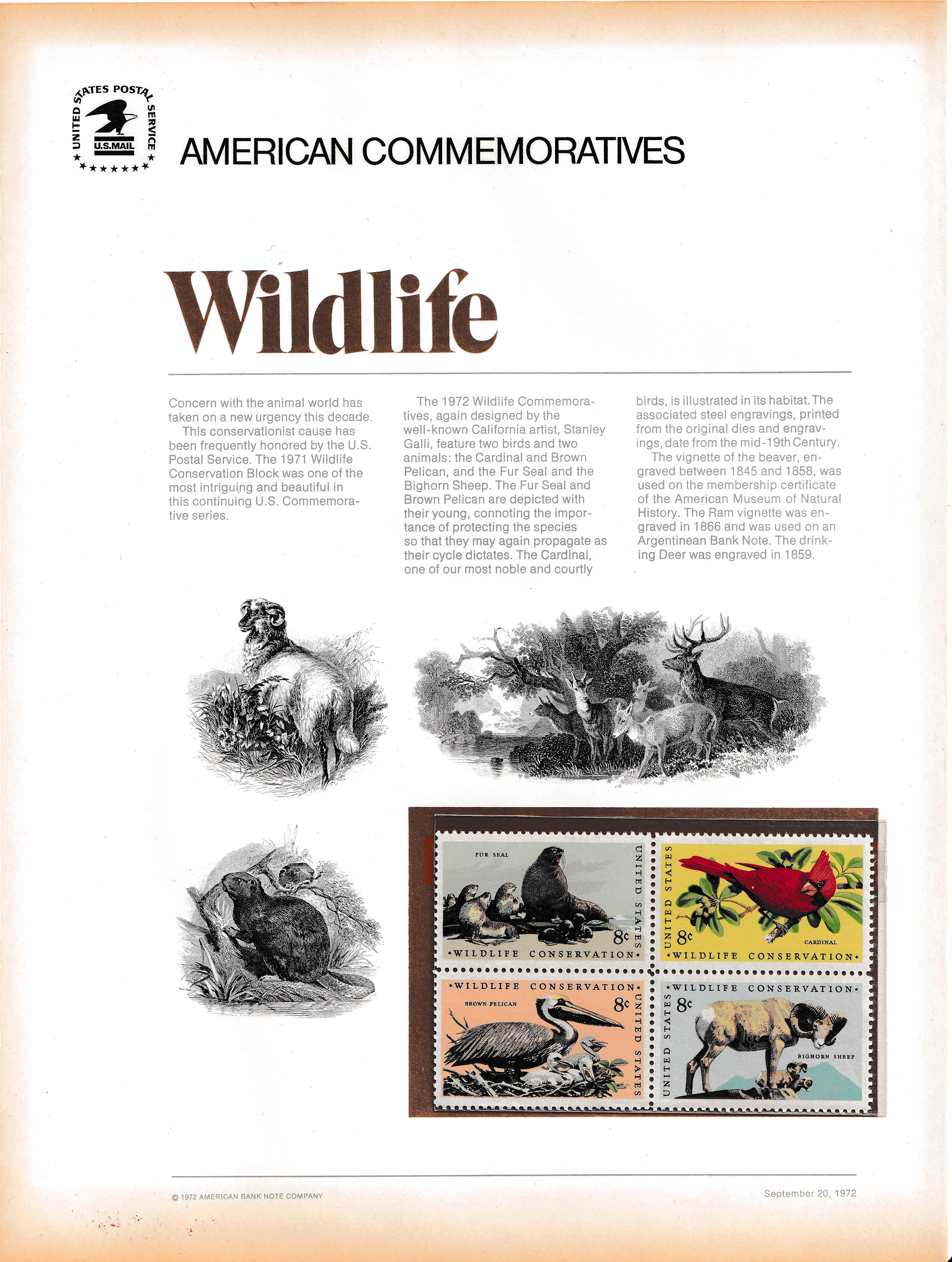 Scott #1464-1467, Wildlife Conservation, was the first Commemorative Panel to be issues, September 20, 1972.
