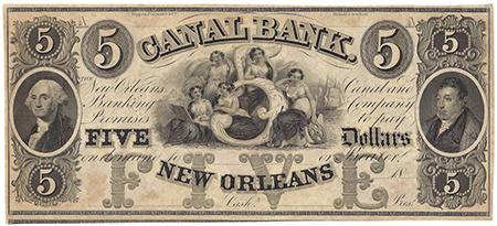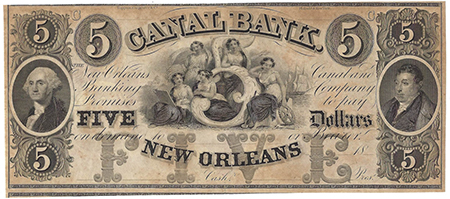 | 1825 | 1850'S | 5 Dollars | Obsolete Bank Note | Canal Bank New Orleans |