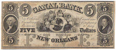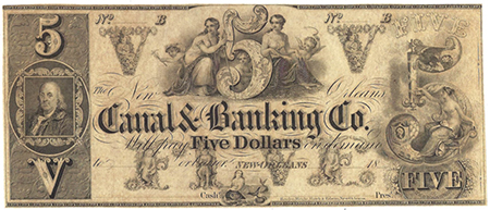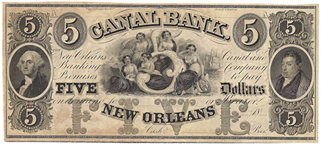 | 1833 | 1850'S | 5 Dollars | Obsolete Bank Note | Canal & Banking Co., New Orleans |