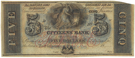 | 1823 | 1850'S | 5 Dollars | Obsolete Bank Note | CItizens Bank of Louisiana at New Orleans |