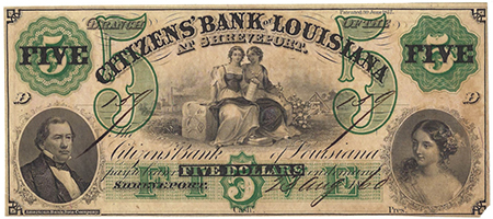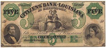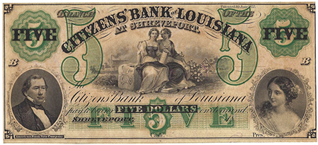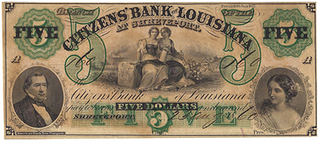 | 3237 | 1860 | 5 Dollars | Obsolete Bank Note | Citizens Bank of Louisiana at Shreveport |