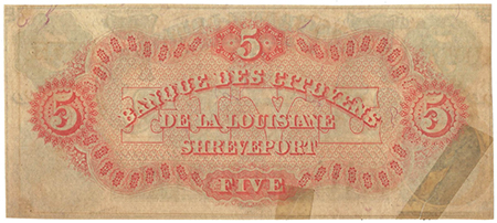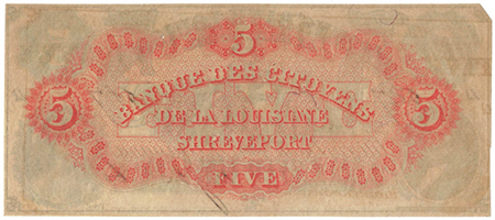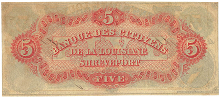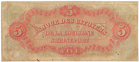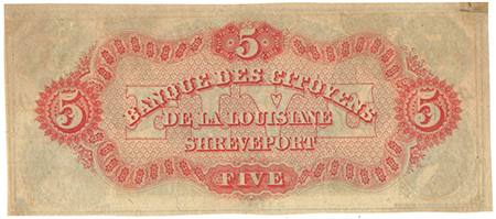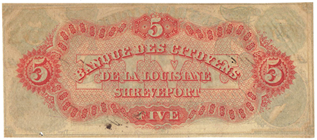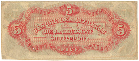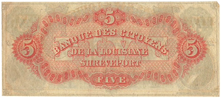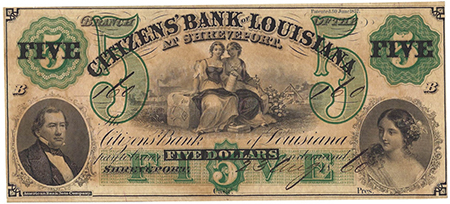 | 3242 | 1860 | 5 Dollars | Obsolete Bank Note | Citizens Bank of Louisiana at Shreveport |