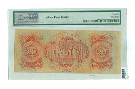 | 3267 | 1850's | 20 Dollars | Obsolete Notes | Canal Bank, New Orleans, Louisiana | Remainder | LA105G36a | 5 | PMG MS-66 EPQ | $150.00 | |||||
