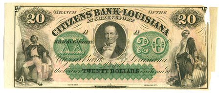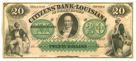 | 3258 | 1860 | 20 Dollars | Obsolete Bank Note | Citizens Bank of Louisiana, Shreveport |
