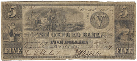 | 929 | 1837 | 5 Dollars | Obsolete Bank Note | Maine, Oxford Bank, Fryeburg | 822 | 315-G20 | 2 | $95.00 | ||||||