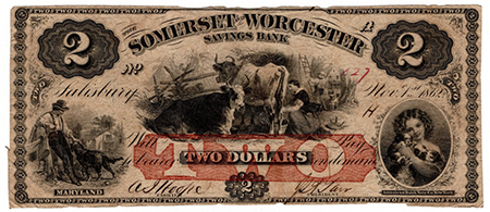 | 2803 | November 1, 1862 | 1 Dollar | Obsolete Bank Note - Maryland | Somerset & Worcester Savings Bank, Maryland Lamb, Beehive |