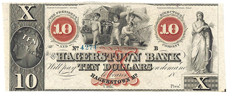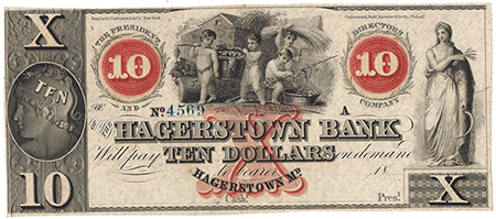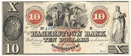| 1422 | 1850's | 10 Dollars | Obsolete Bank Note - Maryland | Hagerstown Bank, Maryland | 4274 | Remainder | 2 | Uncirculated | $165.00 | |||||