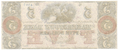 | 1858 | 1855 | 5 Dollars | Obsolete Bank Note - Maryland | Valley Bank, Haherstown, Maryland | 1269 | Red Underprint | 2 | Fine | $50.00 | |||||