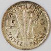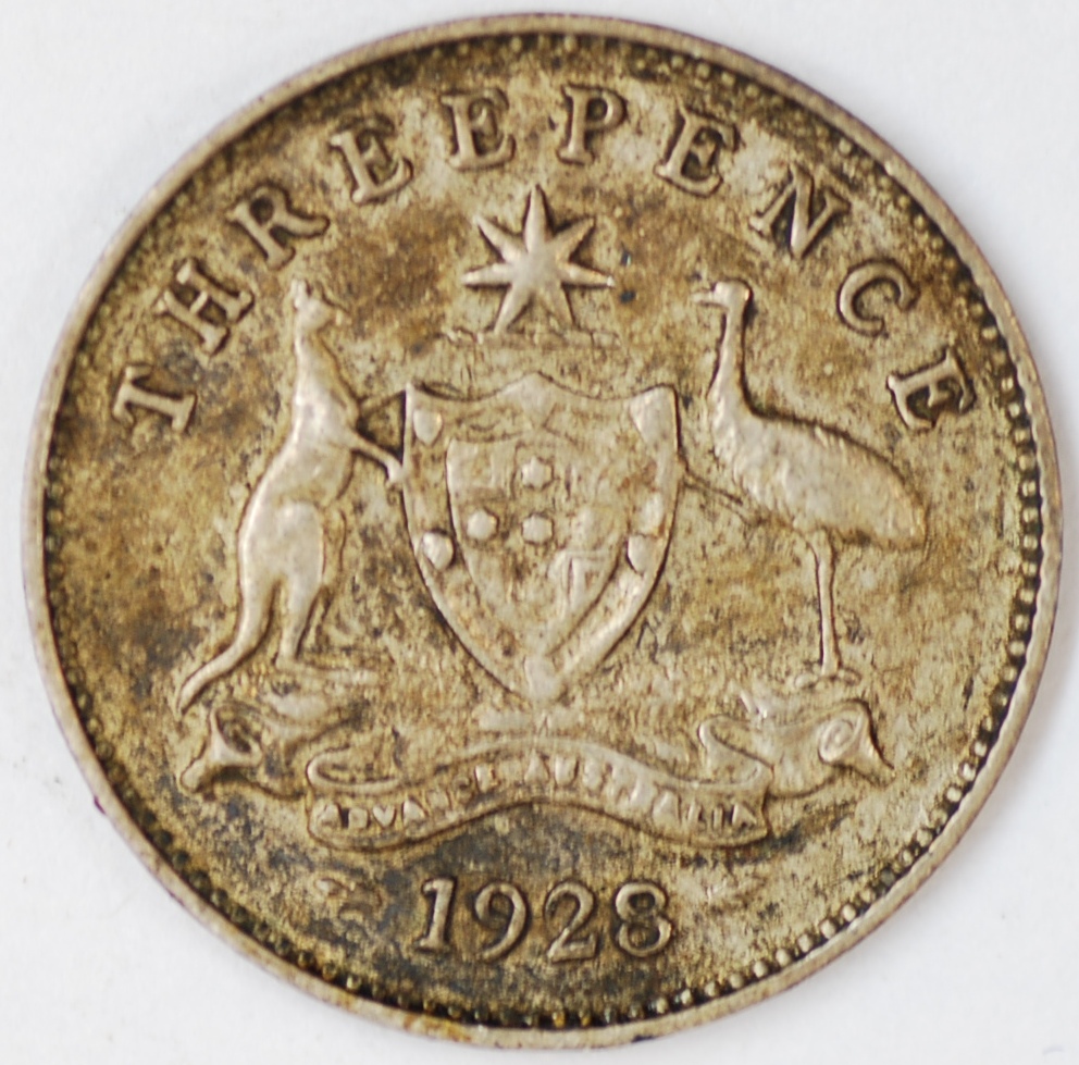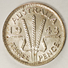 | FC | 21209 | 1928 (m) | AUSTRALIA | 3 Pence | Arms | George V | 0.925 | 0.0393 | Silver | 24 | 3 | Extremely Fine | $30.00 | ||