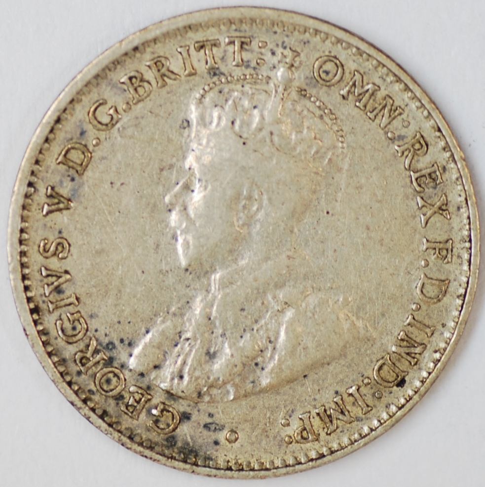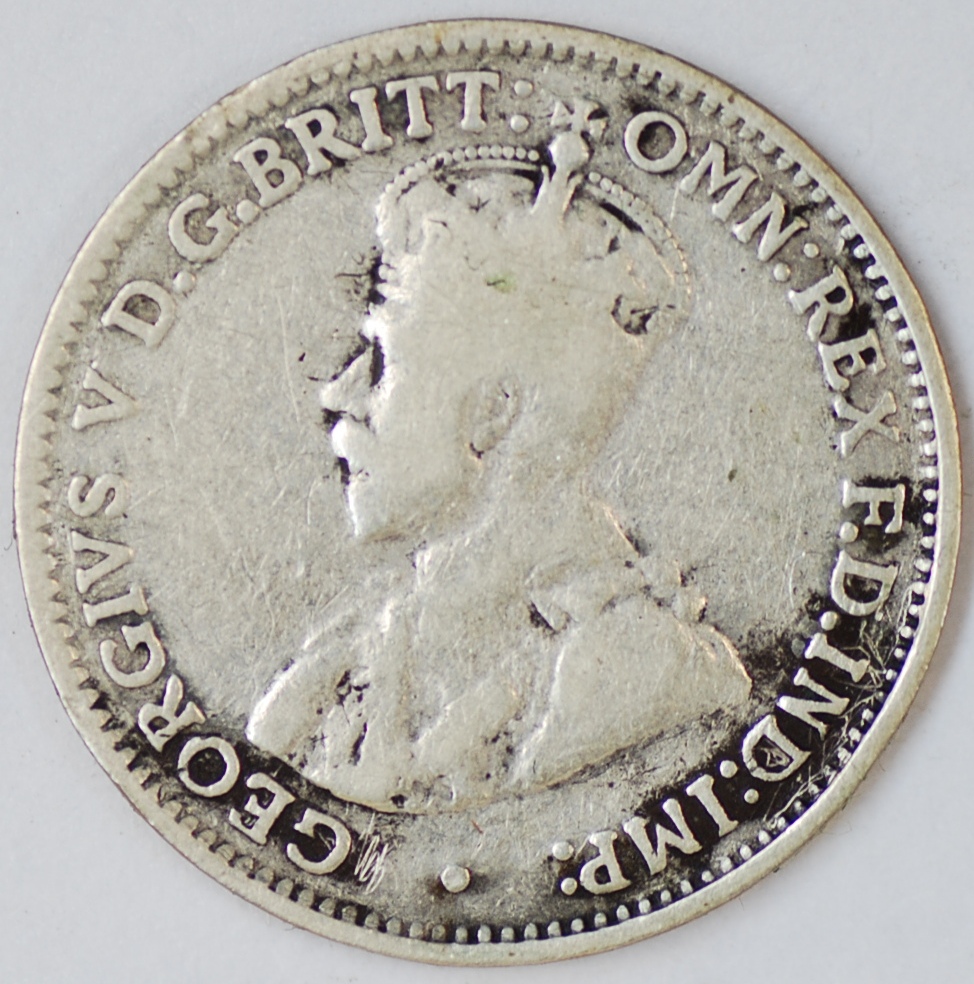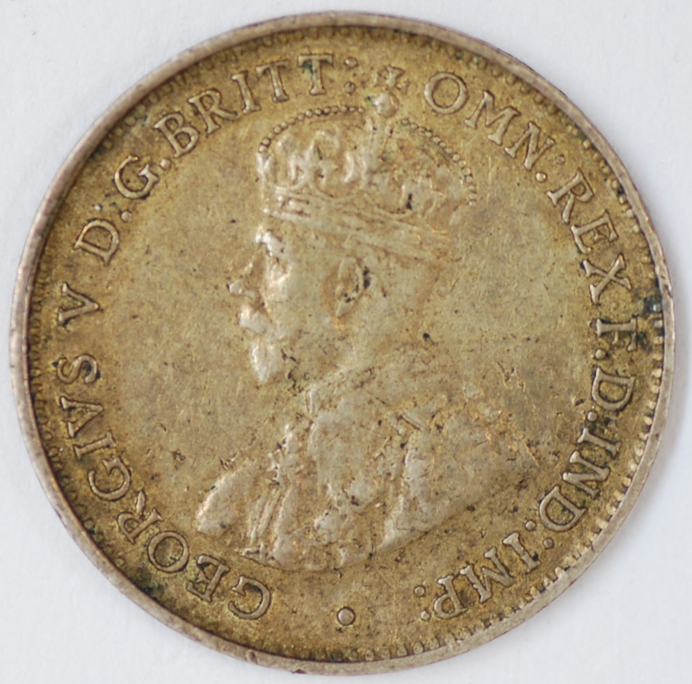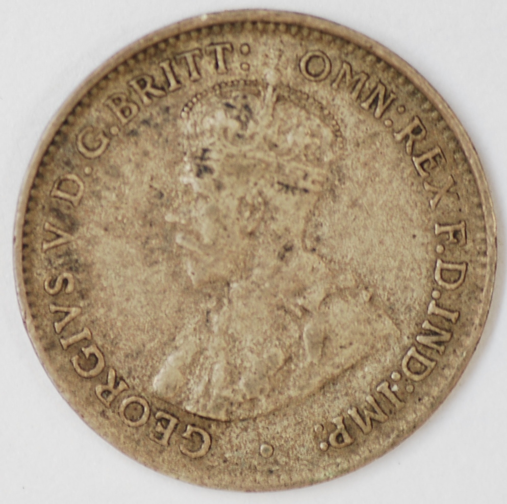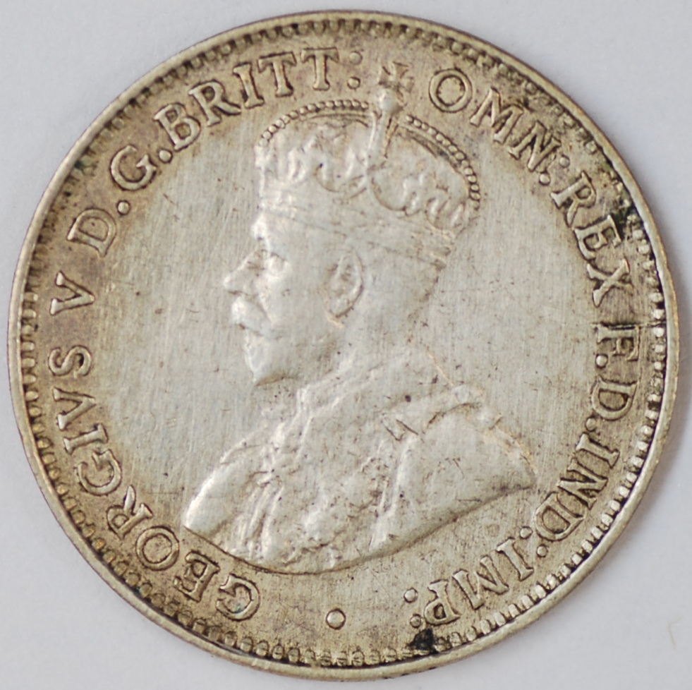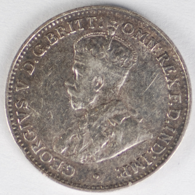 | FC | 346 | 1919-M | AUSTRALIA | 3 Pence | Arms | George V | 0.925 | 0.0393 | Silver | 24 | 3 | Fine | $2.25 | ||