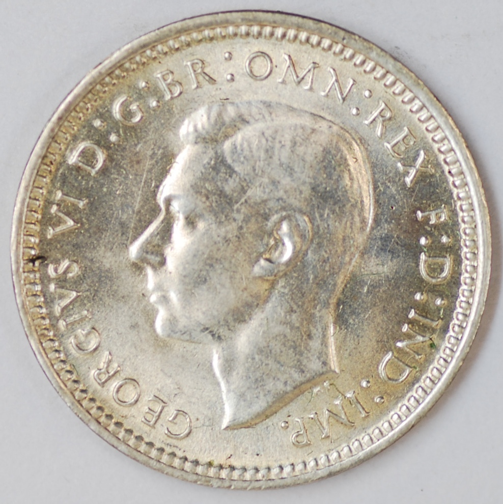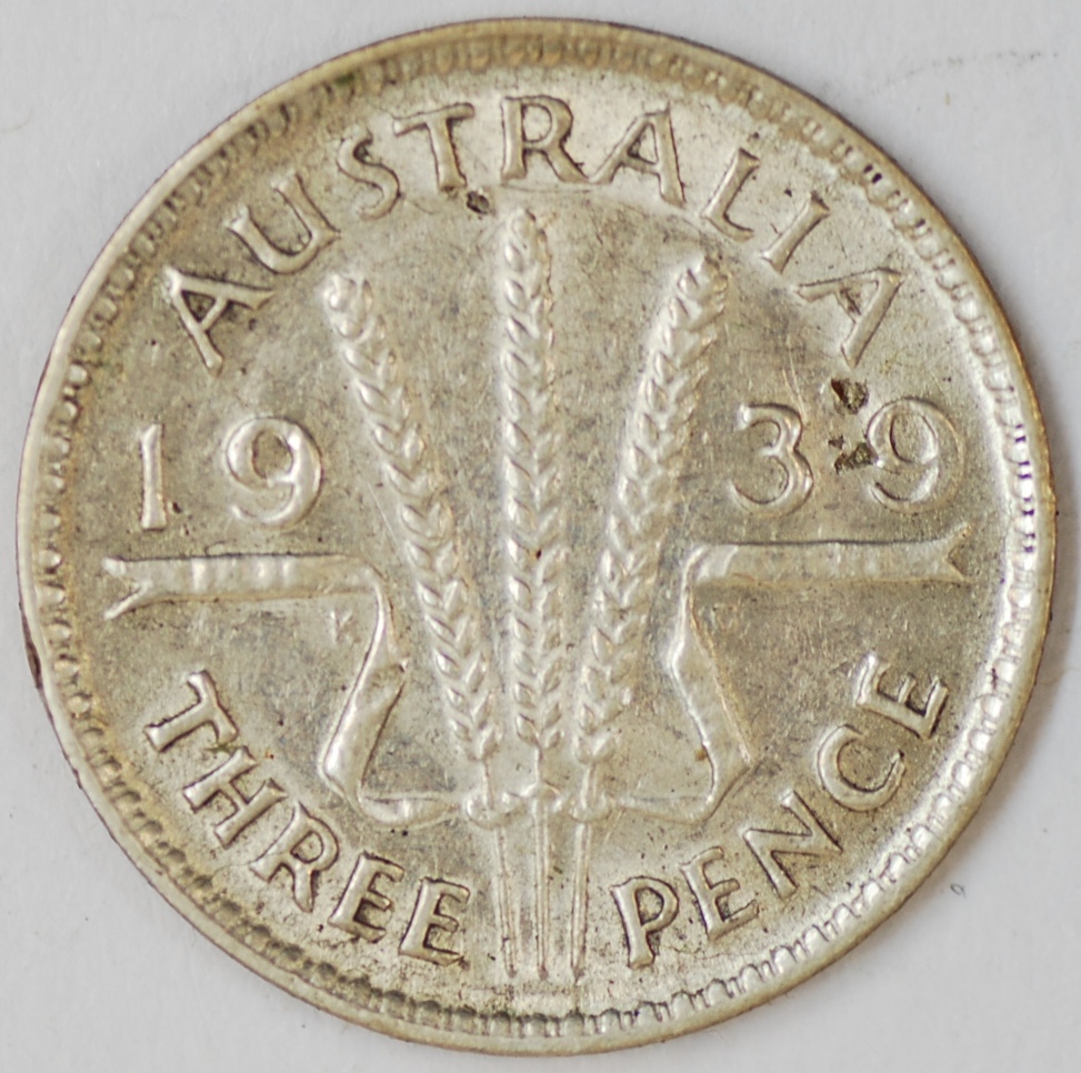 | FC | 6886 | 1939 (m) | AUSTRALIA | 3 Pence | Wheat Stalks | George VI | 0.925 | 0.0419 | Silver | 37 | 3 | Extremely Fine | $15.00 | ||