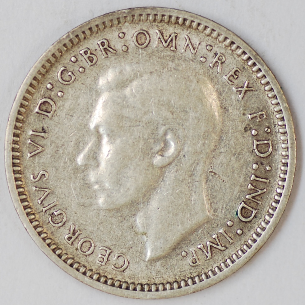 | FC | 38161 | 1938 | AUSTRALIA | 3 Pence | Three Wheat Stalks | George VI | 0.925 | 0.0419 | Silver | 37 | 3 | Extremely Fine | $5.00 | ||