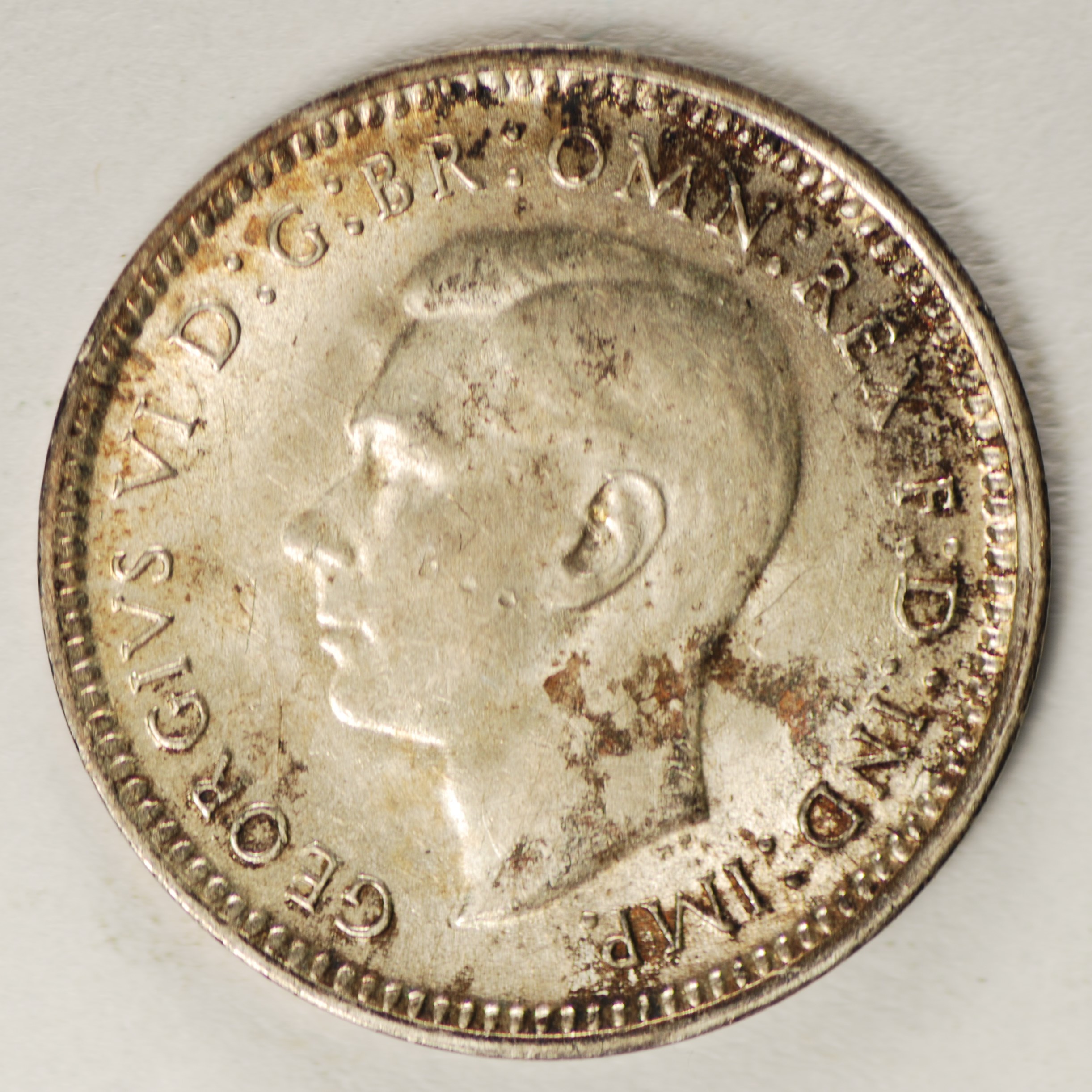 | FC | 6884 | 1936 (m) | AUSTRALIA | 3 Pence | Arms | George V | 0.925 | 0.0393 | Silver | 24 | 3 | Extremely Fine | $12.50 | ||