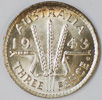 | FC | 6898 | 1949 (m) | AUSTRALIA | 3 Pence | Wheat Stalks | George VI | 0.500 | 0.0227 | Silver | 44 | 3 | Extremely Fine | $1.00 | ||