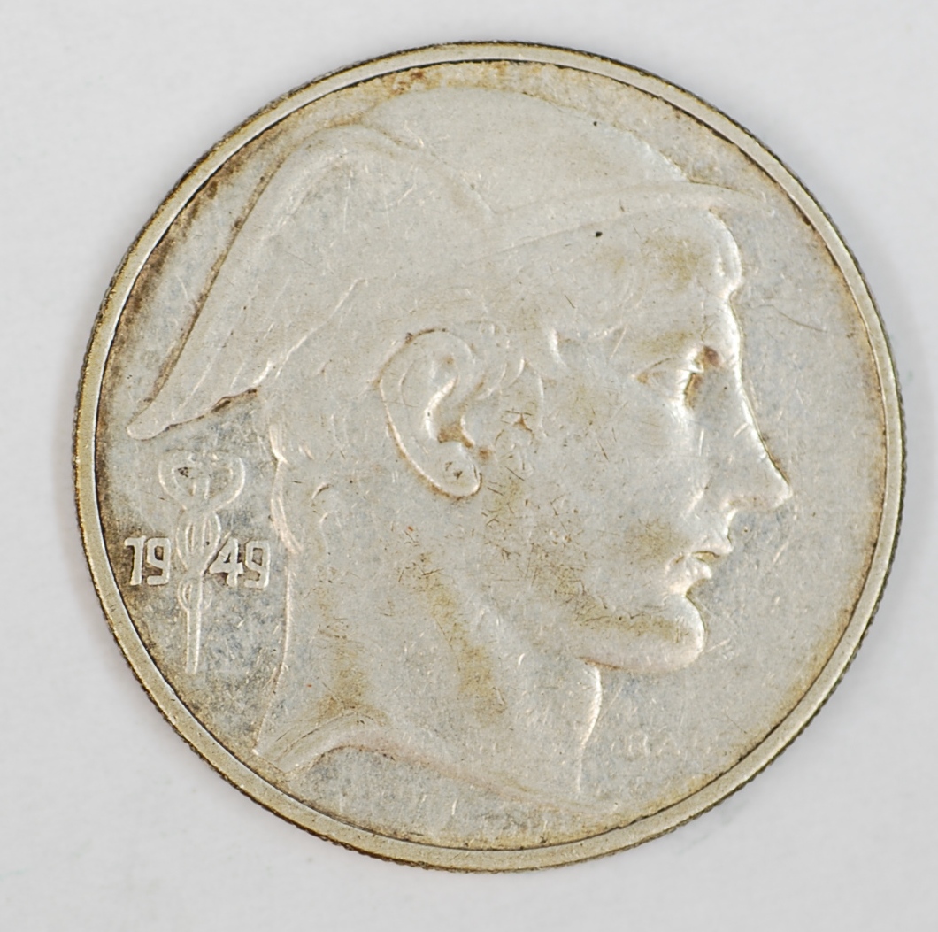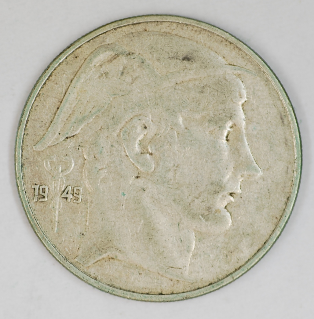 FC | 1349 | 1949 | BELGIUM | 20 Francs | Rampant Lion | 0.835 | 0.2148 | Silver | 140.1 | 11 | Very Fine | $11.00 | |