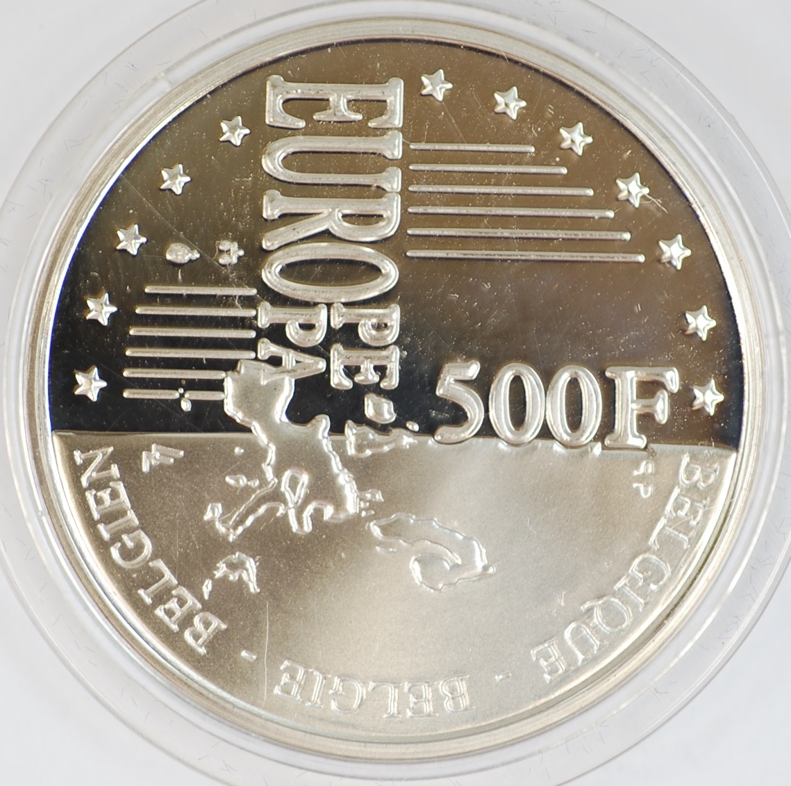 FC | 15903 | 2001 | BELGIUM | 500 Francs | Changeover | Europe on Bull | 0.925 | 0.6795 | Silver | 222 | 12 | Proof | $50.00 |