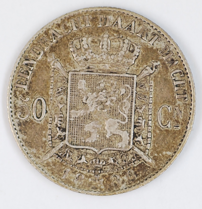 FC | 19503 | 1886 | BELGIUM | 50 Centimes | Leopold II | 0.835 | 0.0671 | Silver | 27 | 11 | Choice Fine | $10.00 | |