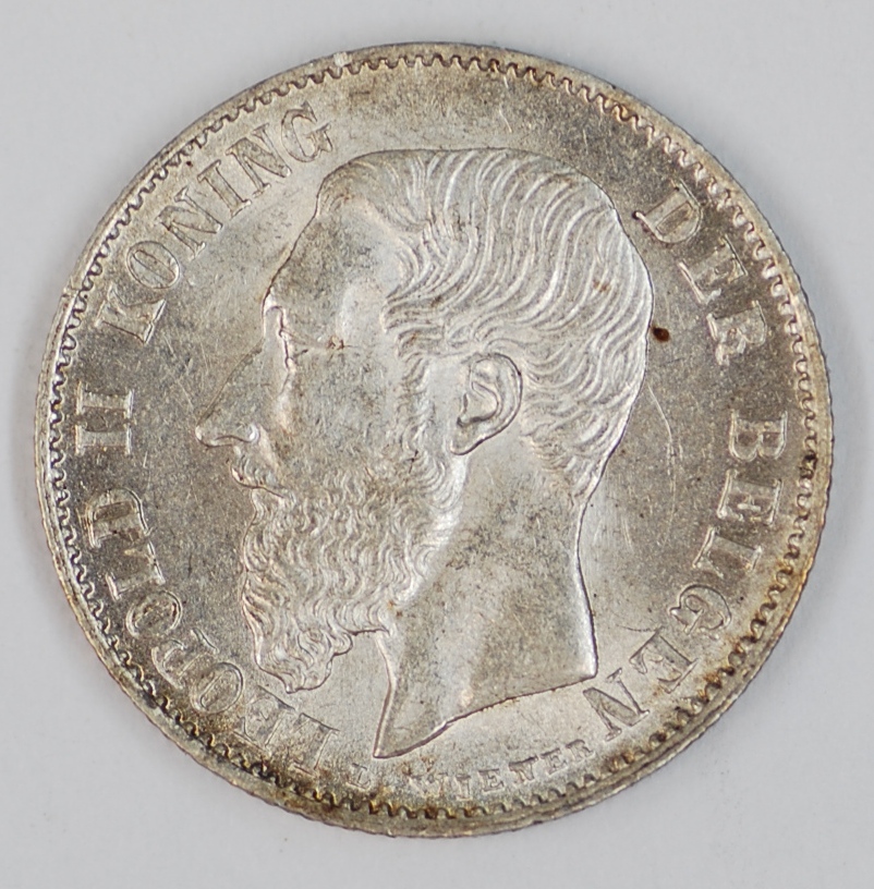 FC | 1292 | 1899 | BELGIUM | 50 Centimes | Leopold II, Der Belges | 0.835 | 0.0671 | Silver | 27 | 11 | Very Fine | $35.00 | |