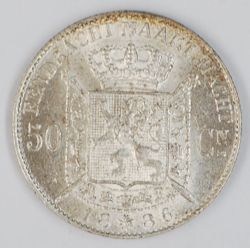 FC | 1291 | 1886 | BELGIUM | 50 Centimes | Leopold II, Der Belges | 0.835 | 0.0671 | Silver | 27 | 11 | Choice Very Fine | $65.00 | |
