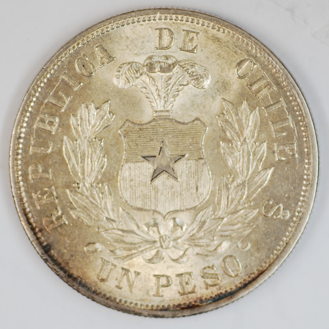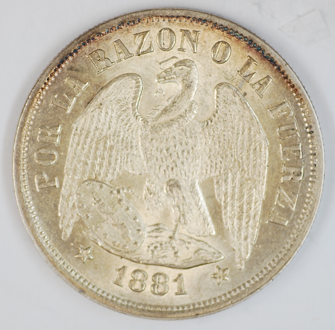 | FC | 16987 | 1881 | CHILE | 1 Peso | Condor with Wings | 0.9 | 0.7234 | Silver | 142.1 | Bril. Uncirculated | Ask for a Price | |||