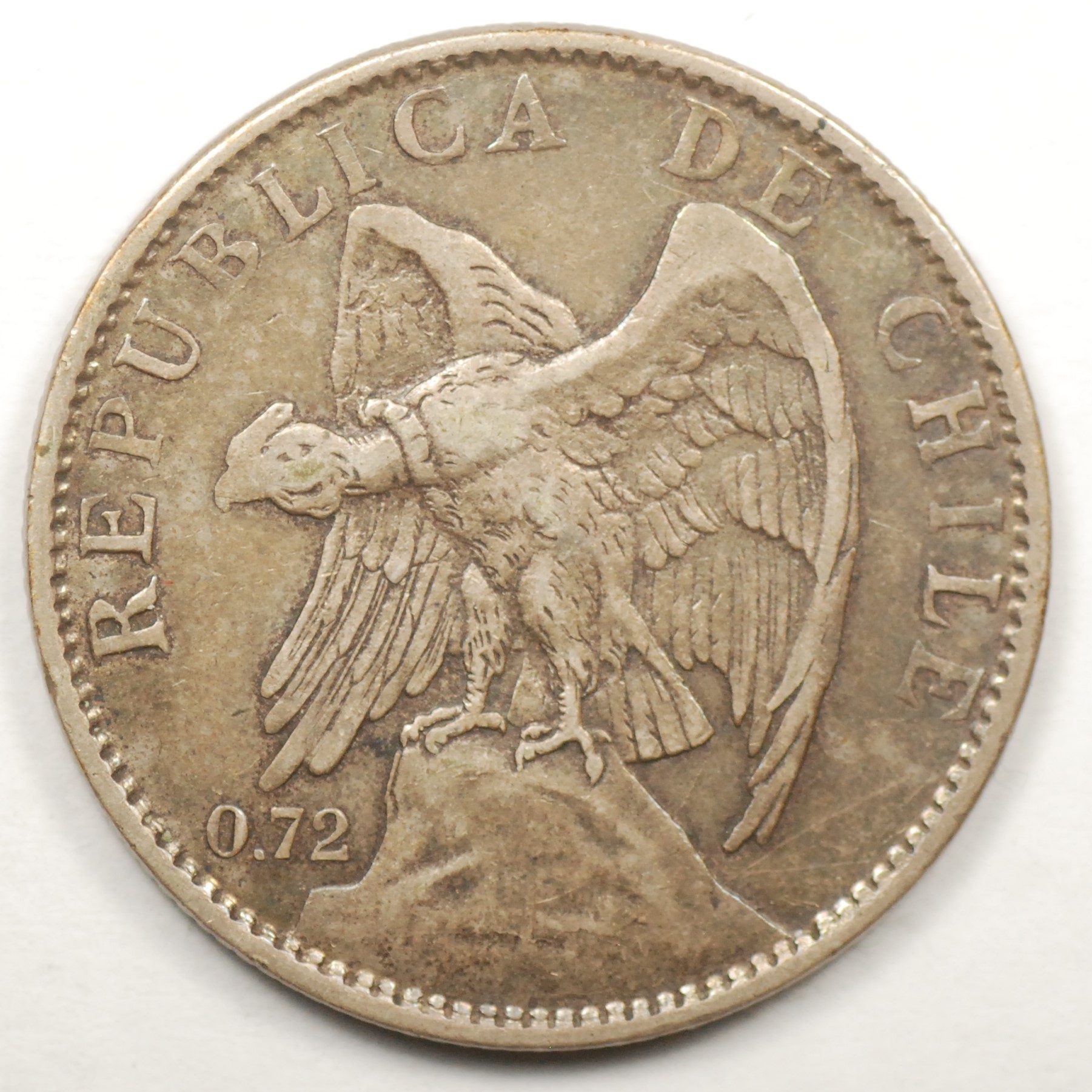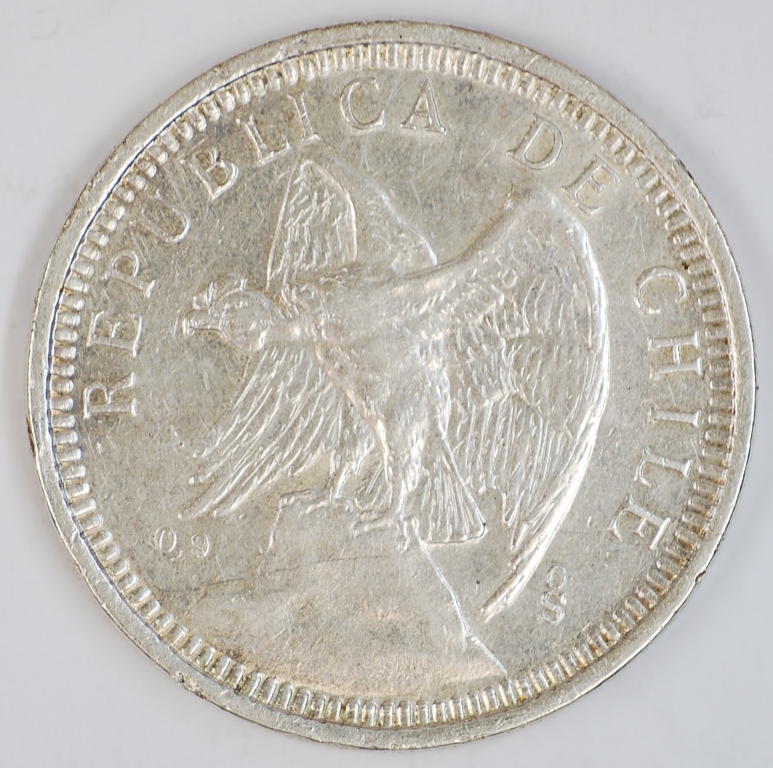 FC | 38911 | 1922 | CHILE | 1 Peso | Condor on Rock | 0.50 | 0.1447 | Silver | 152.5 | Very Fine | $3.00 | |