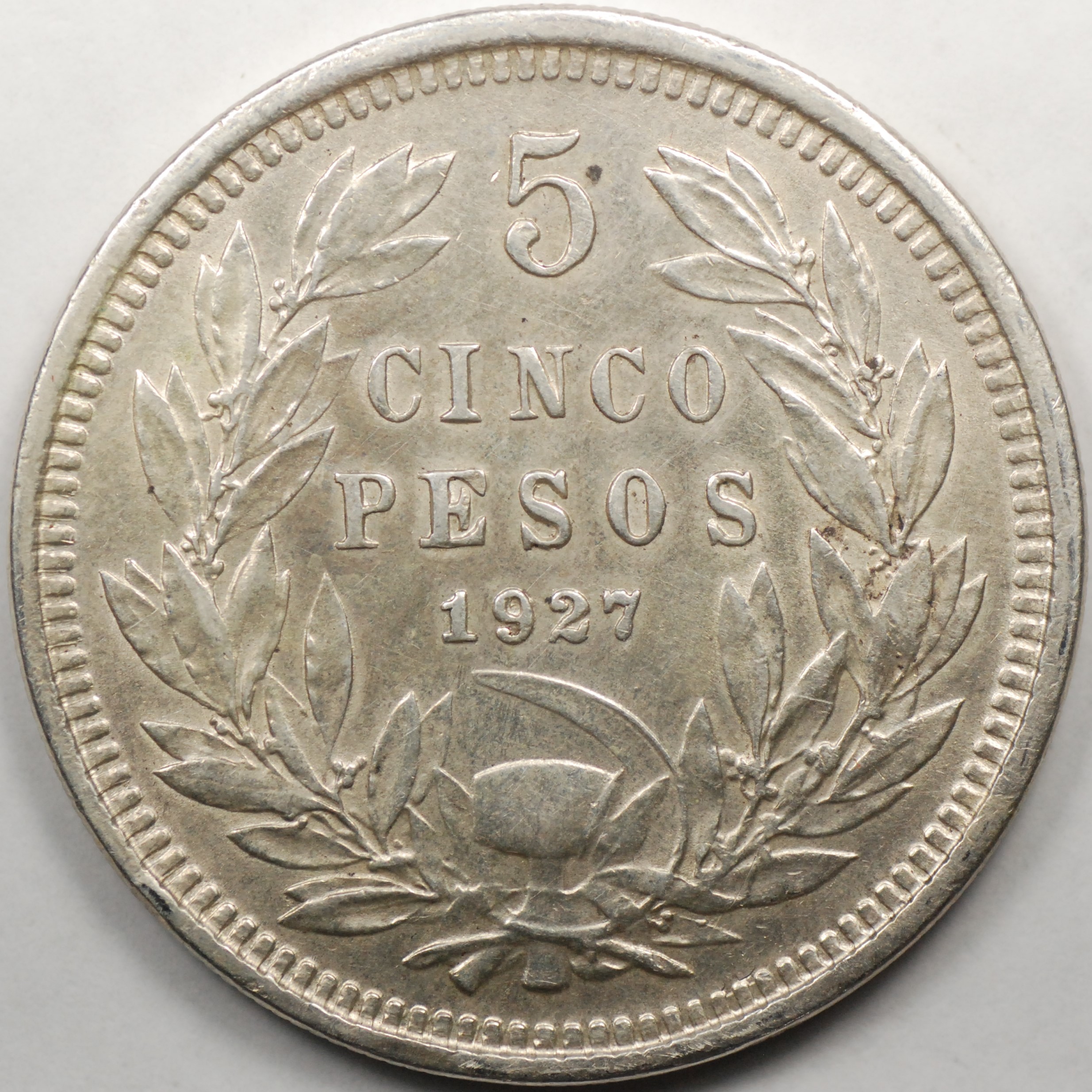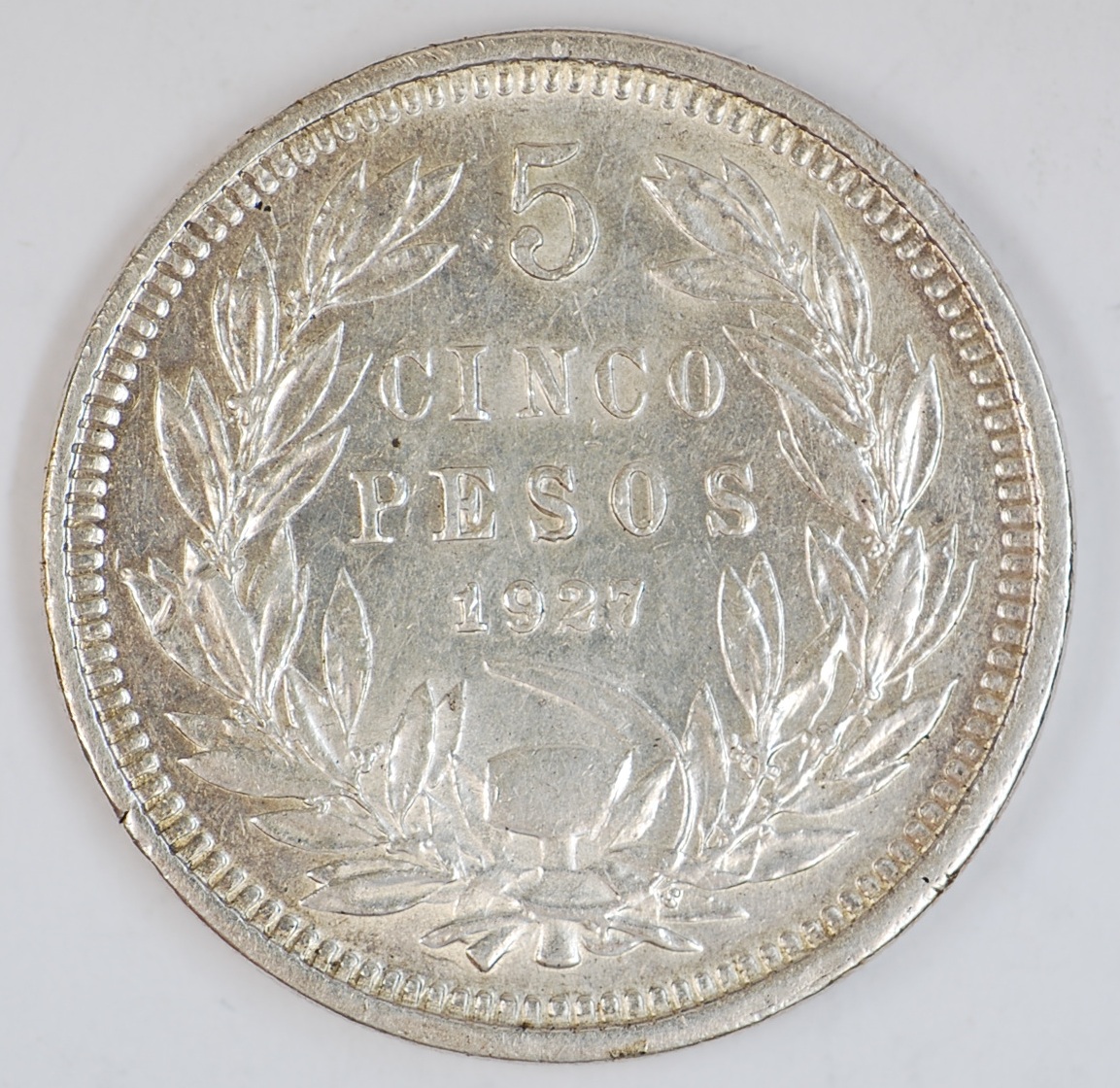 | FC | 28895 | 1927 | CHILE | 5 Pesos | Defiant Condor on Rock | 0.900 | 0.7234 | Silver | 173.1 | Extremely Fine | $37.00 | |||