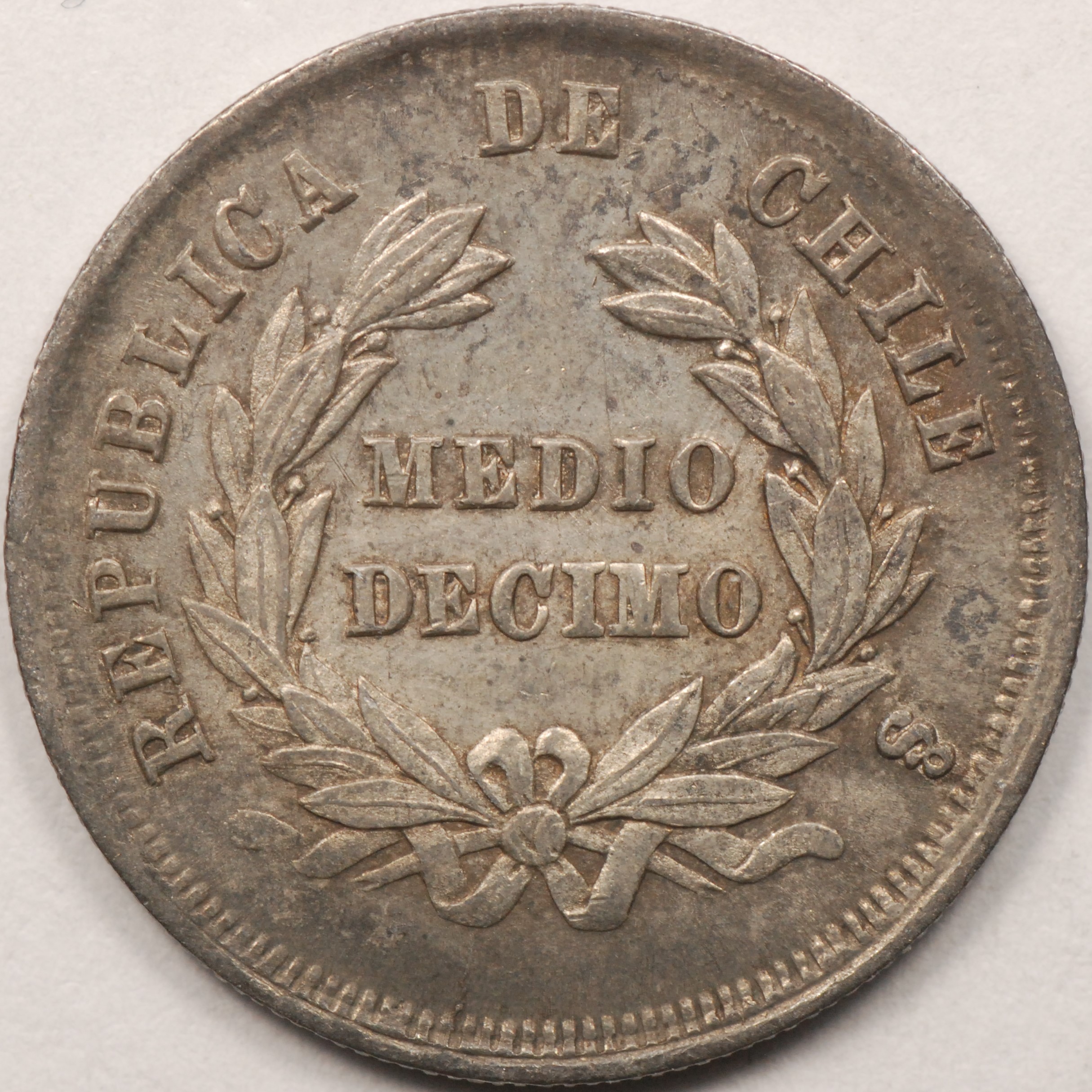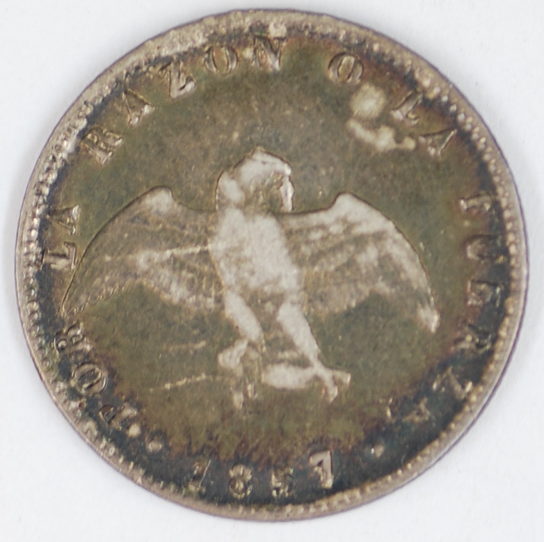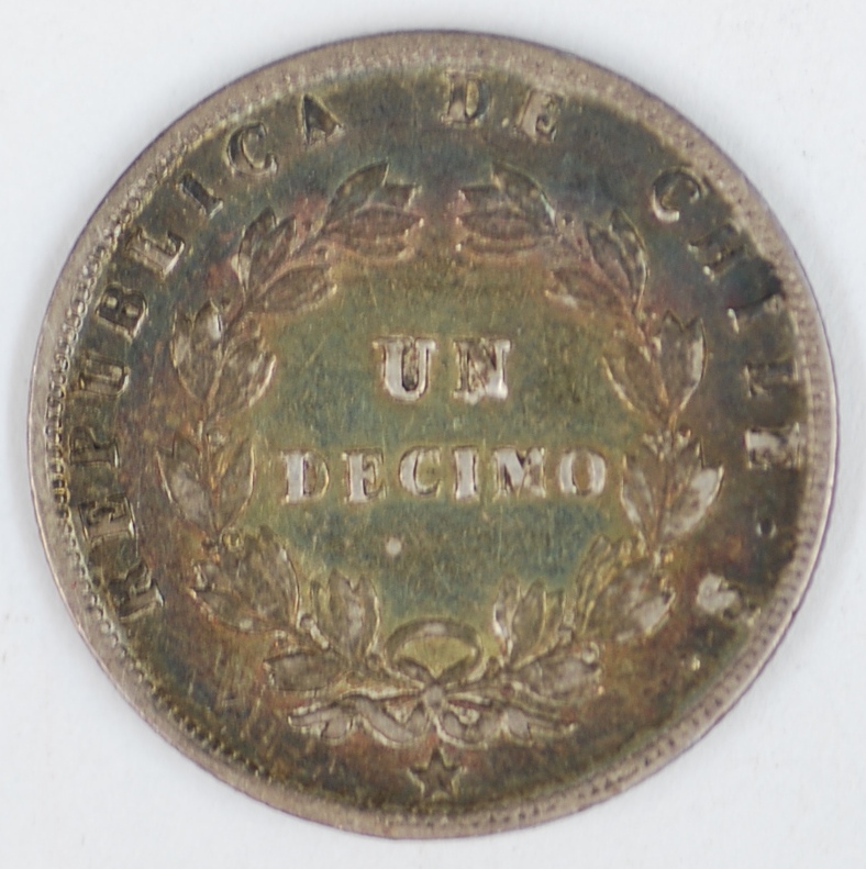 | FC | 22424 | 1857 | CHILE | 1 Decimo | Condor with Spread Wings | 0.900 | 0.0723 | Silver | 124 | Extremely Fine | $15.00 | |||