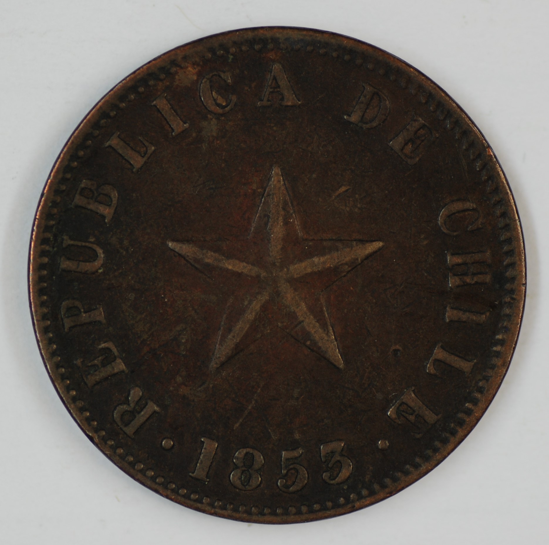 | FC | 10033 | 1853 | CHILE | 1/2 Centavo | Raised Star | Copper | Extremely Fine | $20.00 | ||||||