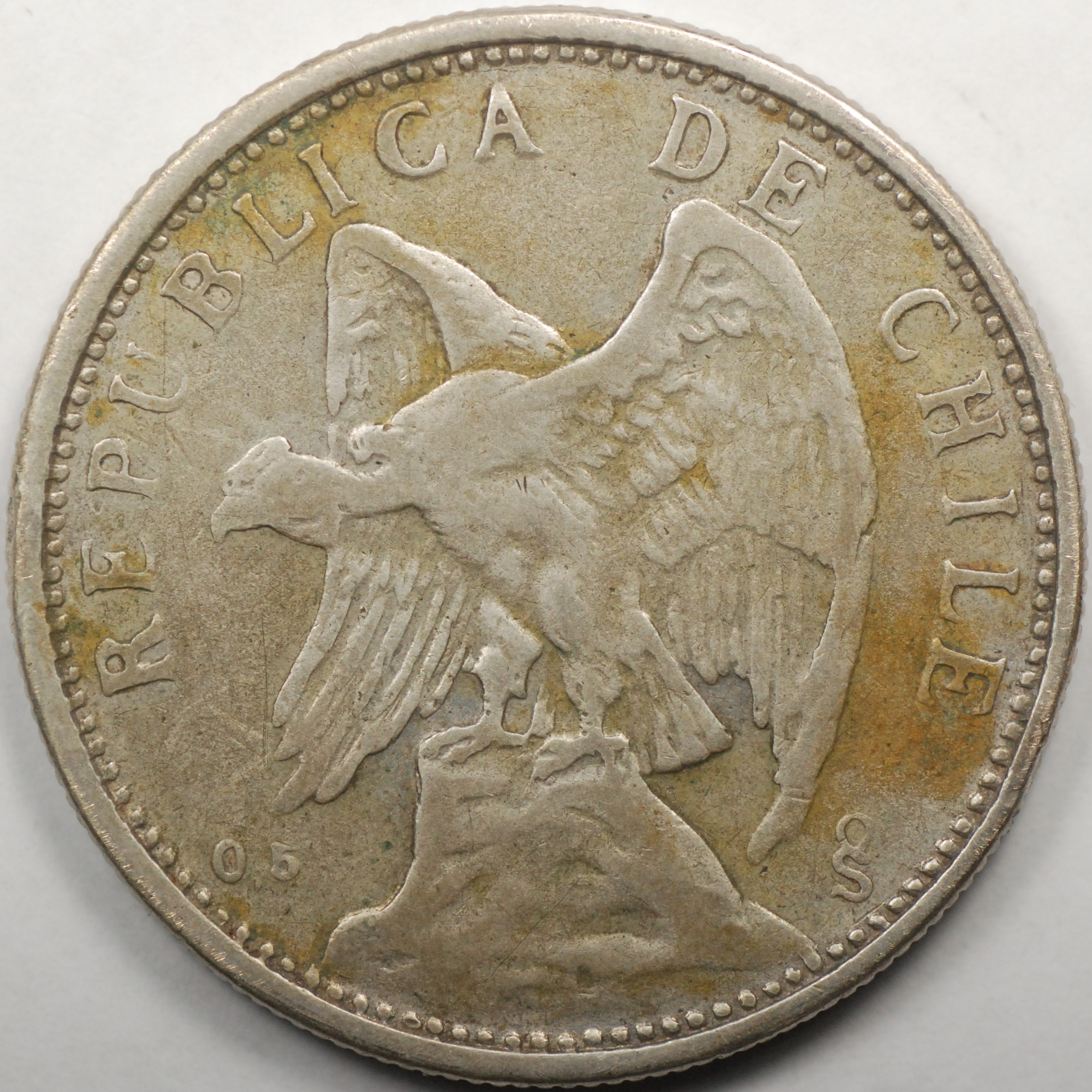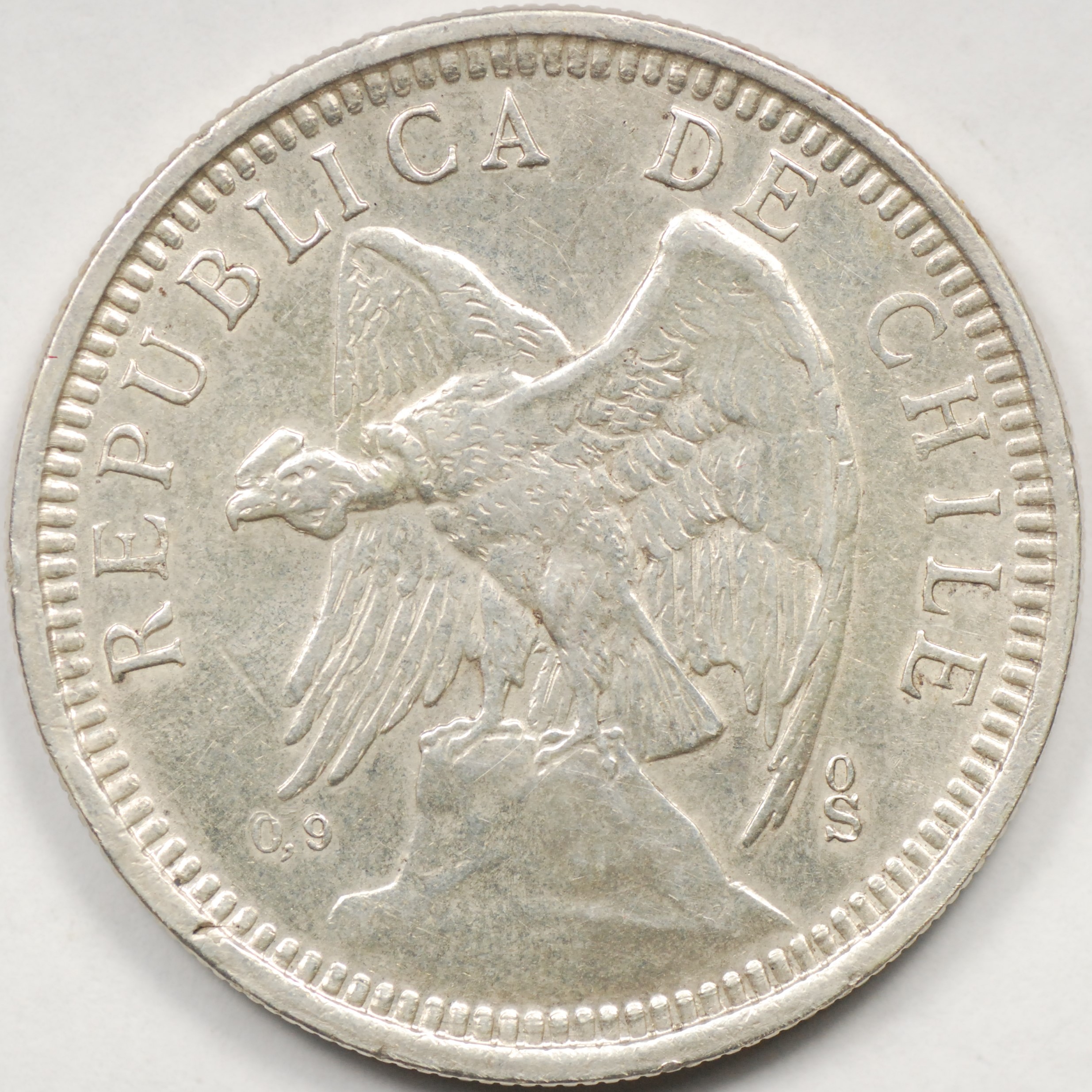 FC | 38909 | 1927 | CHILE | 2 Pesos | Defiant Condor on Rock | 0.500 | 0.2894 | Silver | 172 | Very Fine | $15.00 | |