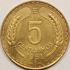 | FC | 30664 | 1961 | CHILE | 5 Centavos | Condor in Flight | Value above Date | Aluminum-Bronze | 190 | Bril. Uncirculated | $15.00 | ||||