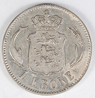 | FC | 22434 | 1876-CS | DENMARK | 2 Kroner | Christian IX | Crowned Arms | 0.800 | 0.0358 | Silver | 798.1 | Extremely Fine | $120.00 | ||