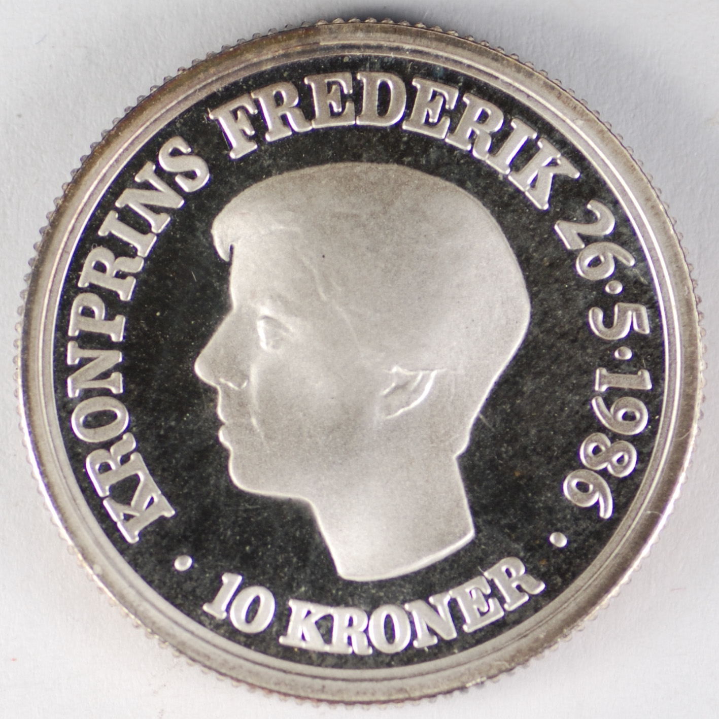 FC | 17621 S | 1986 | DENMARK | 10 Kroner | Margareth II | Crown Prince's 18th Birthday | 0.800 | 0.3678 | Silver | 865a | Proof | $150.00 |