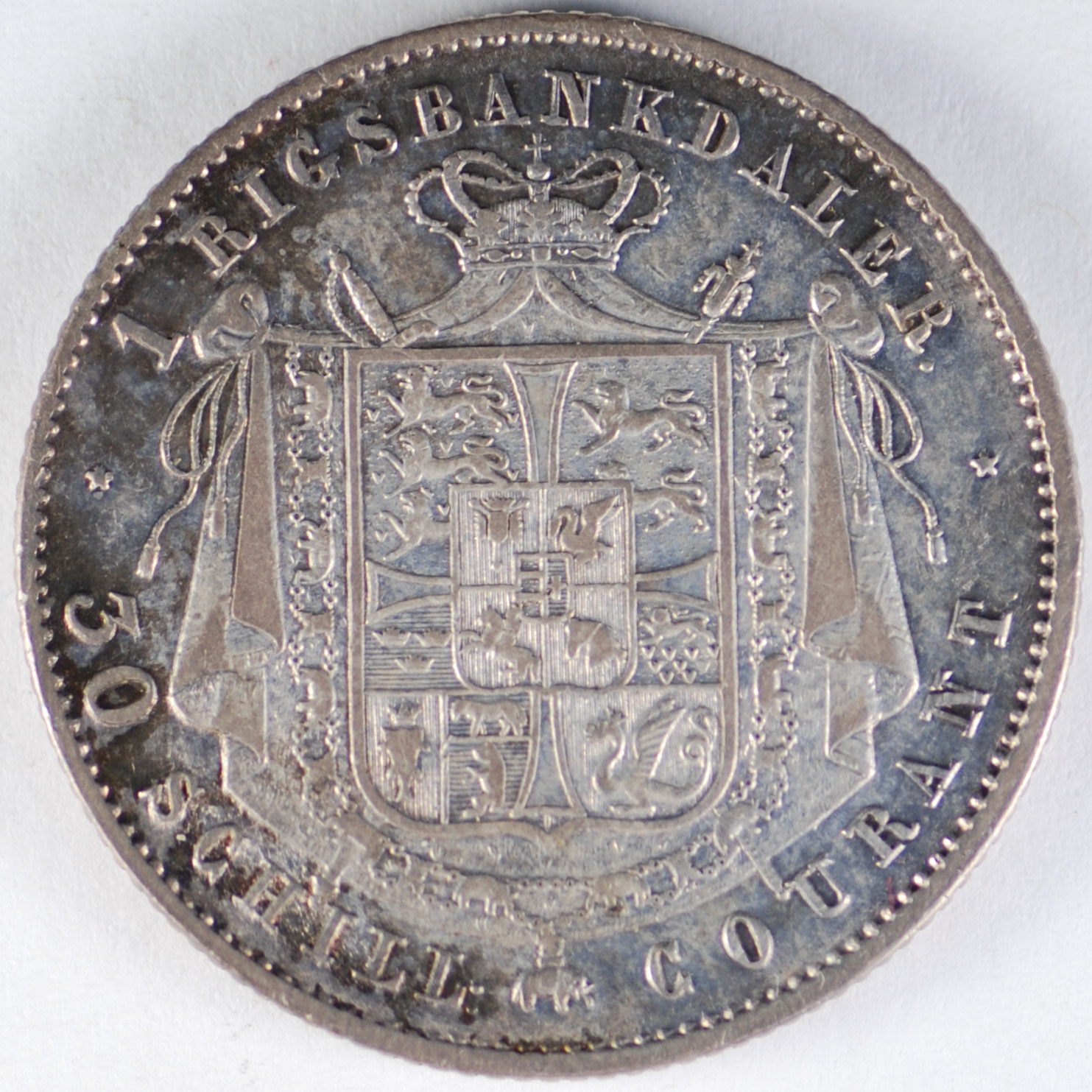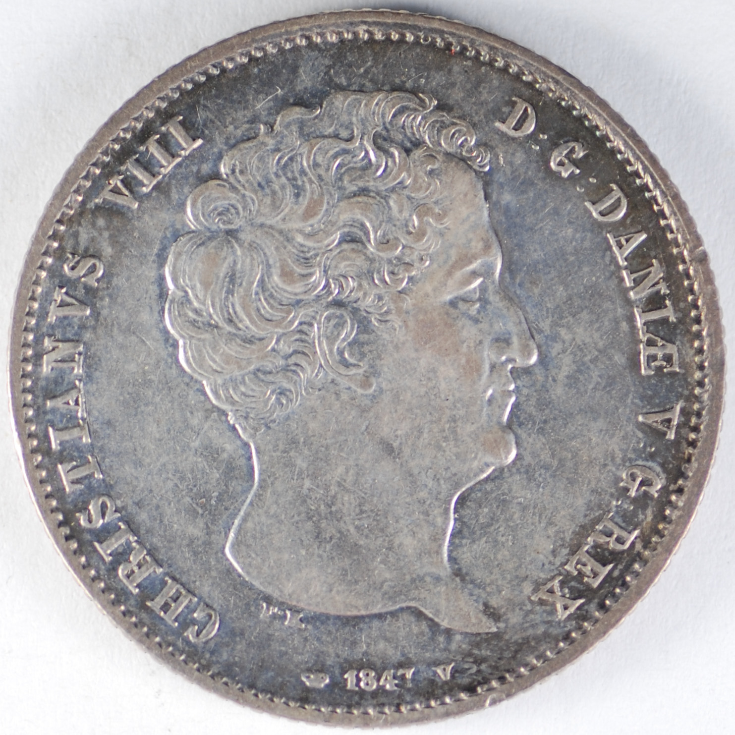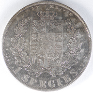 FC | 17600 S | 1847-VS | DENMARK | 1 Rigsbankdaler | Christian VIII | Crowned Arms | 0.875 | 0.8128 | Silver | 735.1 | Extremely Fine | $220.00 |