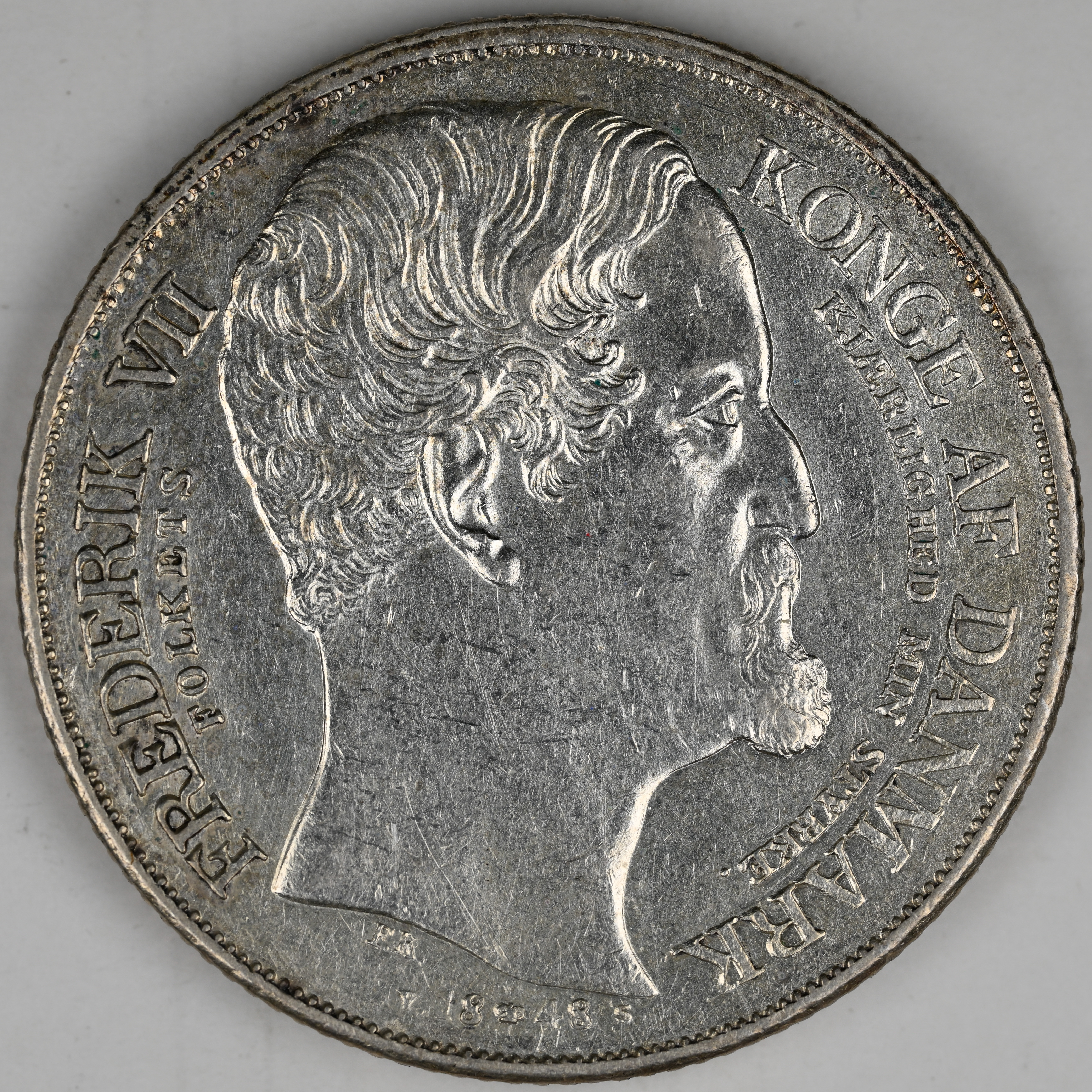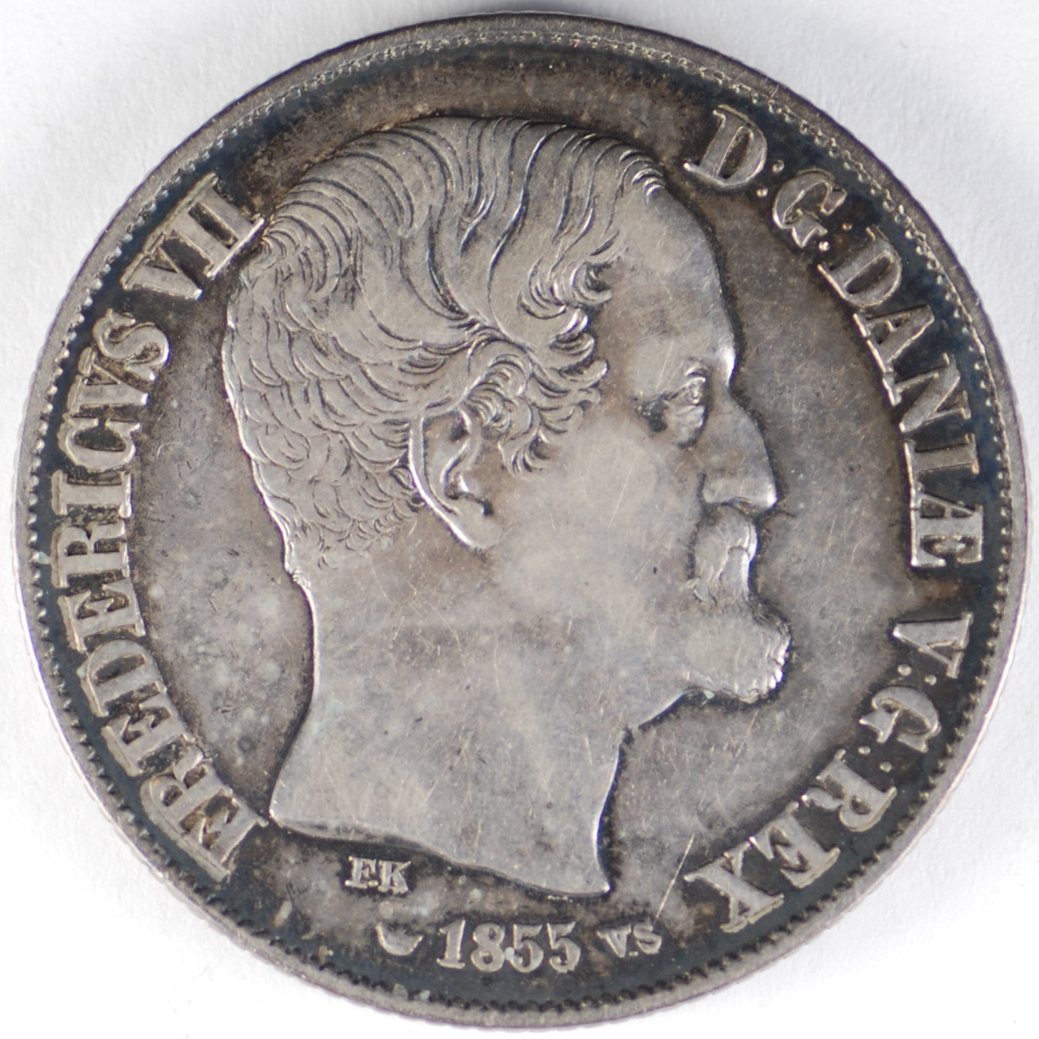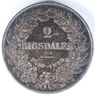 FC | 17598 S | 1855-FK/VS | DENMARK | 2 Rigsdaler | Frederik VII | 0.875 | 0.8128 | Silver | 761.2 | Very Fine | $260.00 | |
