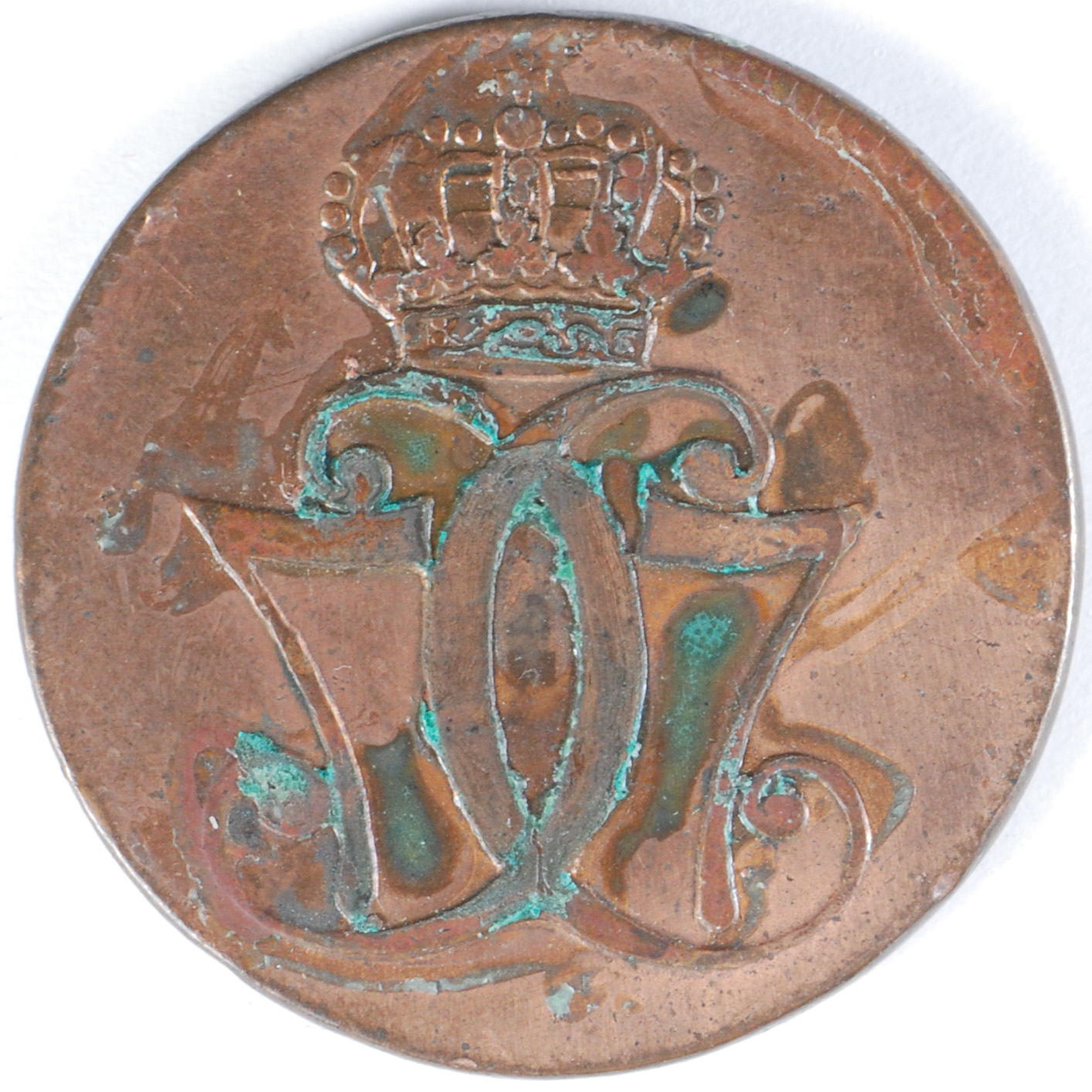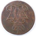 FC | 38874 | 1771 | DENMARK | 1 Skilling | Crowned Monogram | Christian VII | Copper | 616.1 | Very Good | $8.00 | ||