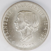 FC | 17617 | 1964 | DENMARK | 5 Kroner | Frederik IX | Princess Ann Marie Wedding | 0.800 | 0.4372 | Silver | 854 | Bril. Uncirculated | $20.00 |