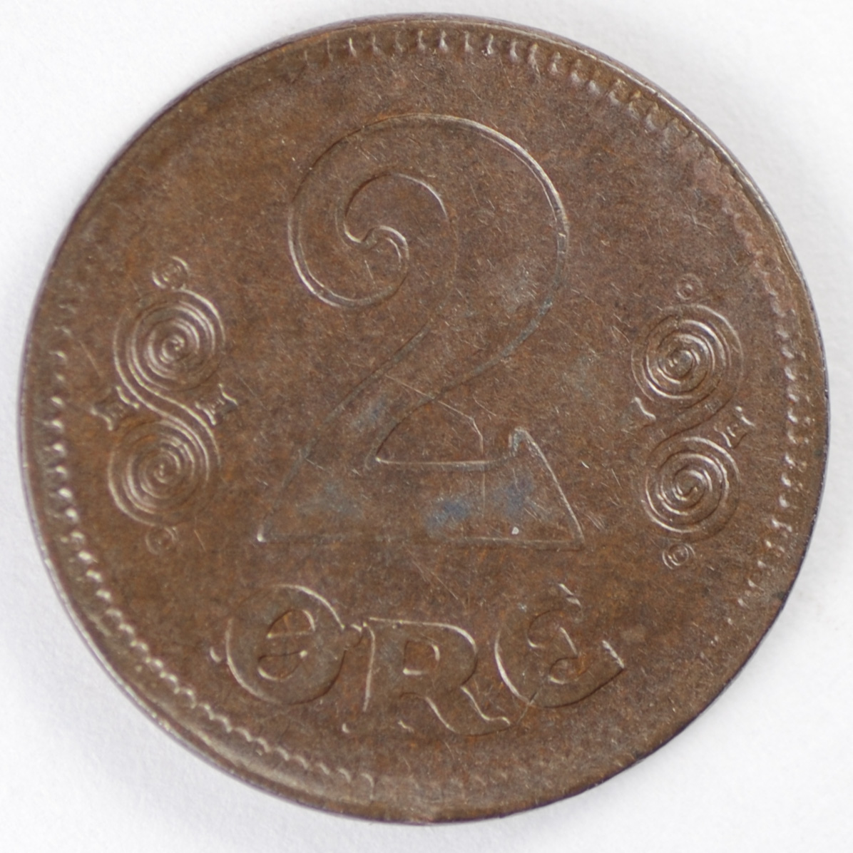 FC | 39009 | 1926 | DENMARK | 2 Kroner | Crowned Monogram | Bronze | 825.1 | Very Fine | $10.00 | |||