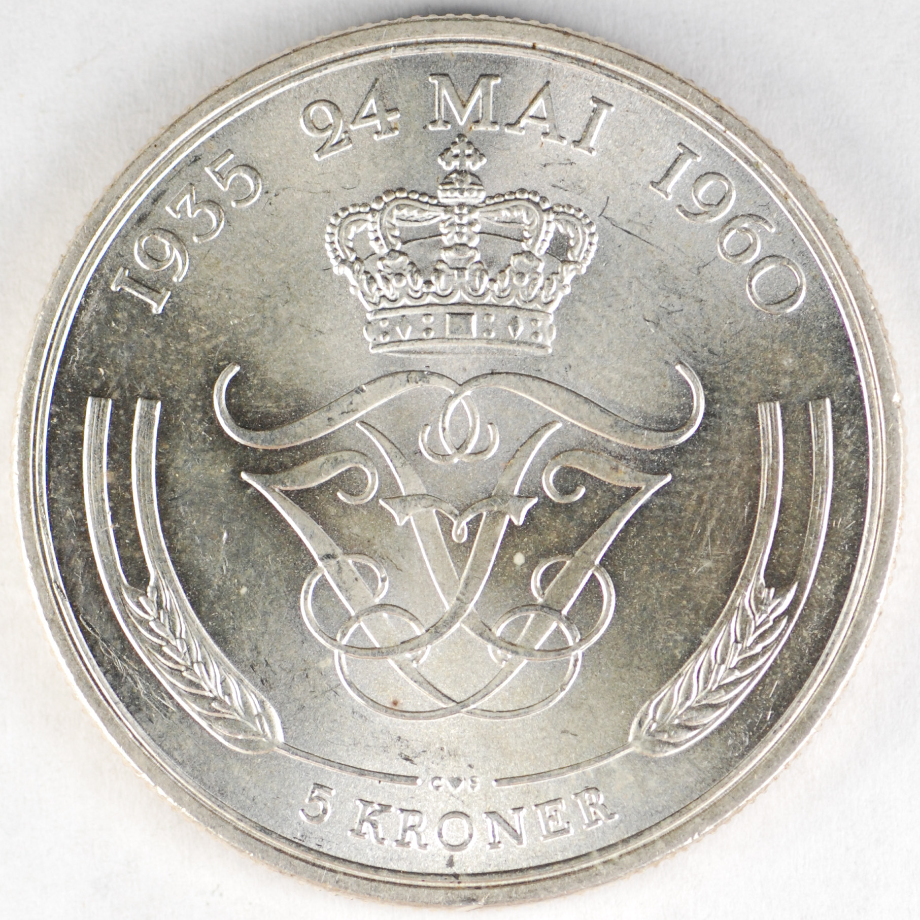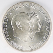 FC | 17614 | 1960 | DENMARK | 5 Kroner | Frederik IX | Silver Wedding | 0.800 | 0.4372 | Silver | 852 | Bril. Uncirculated | $50.00 |