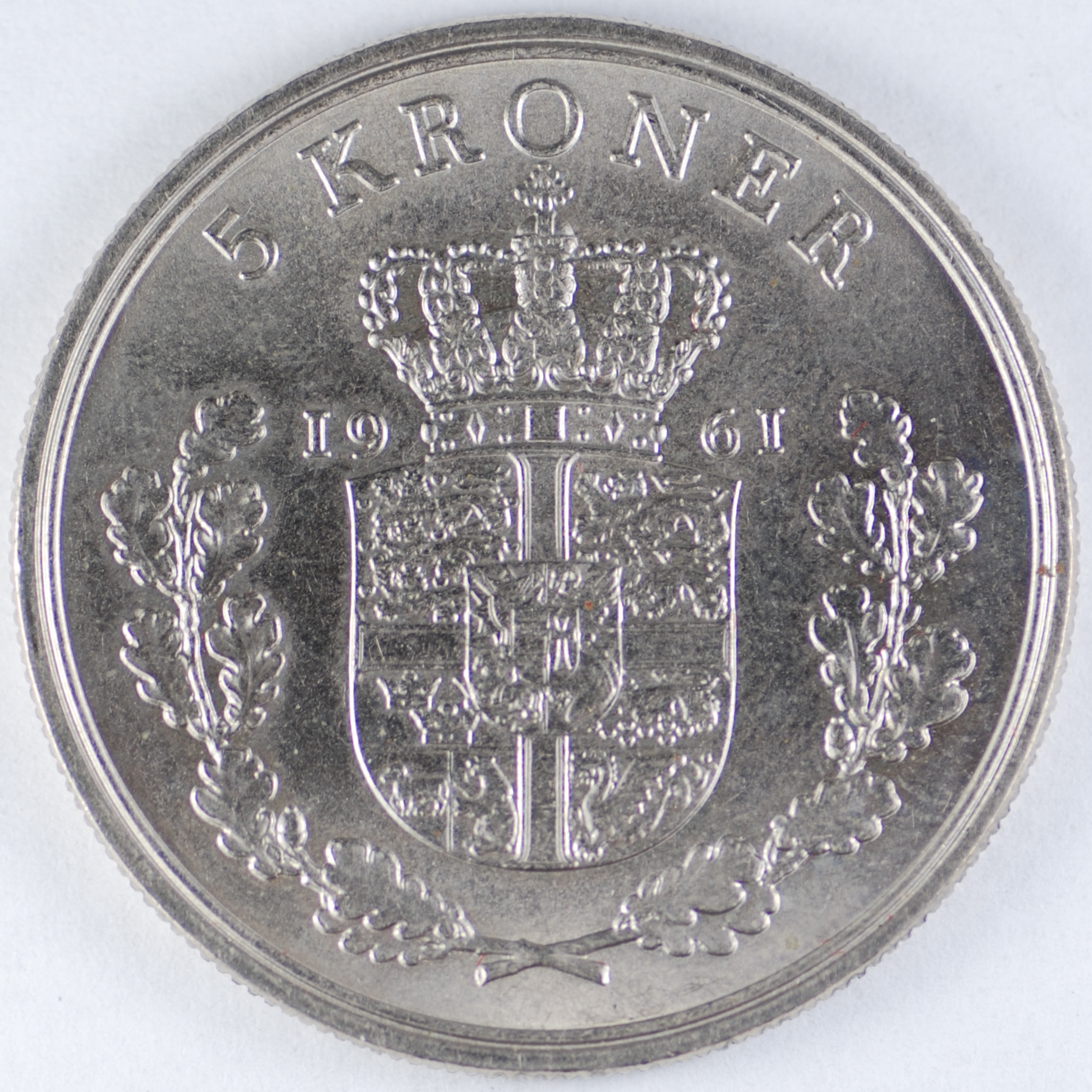 FC | 17615 | 1961 | DENMARK | 5 Kroner | Frederik IX | Copper-Nickel | 853.1 | Uncirculated | $5.00 | |||