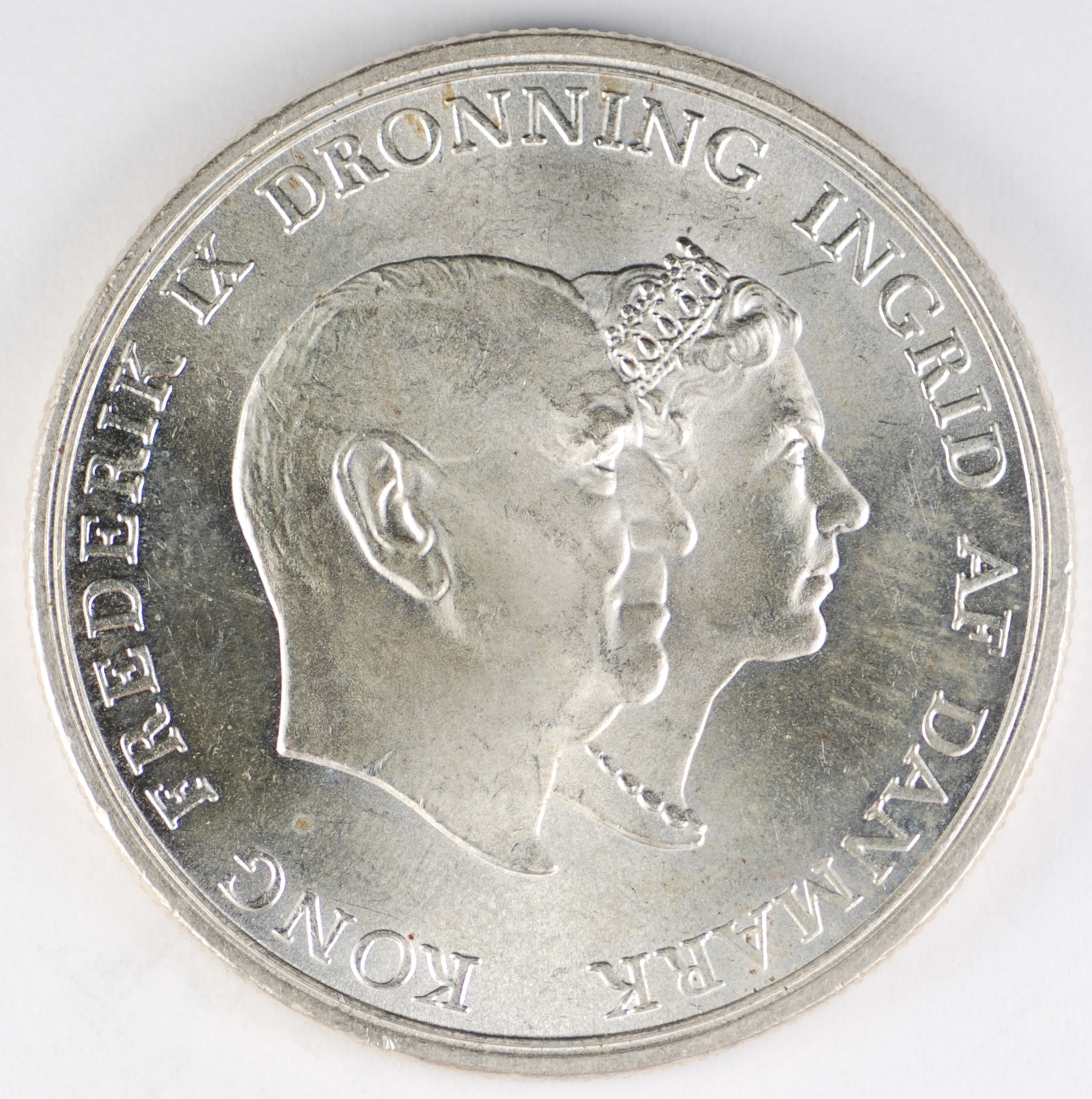 FC | 17613 | 1958 | DENMARK | 2 Kroner | Frederik IX | Princess Margareth's 18th Birthday | 0.800 | 0.3858 | Silver | 844 | Bril. Uncirculated | $50.00 |
