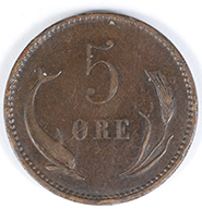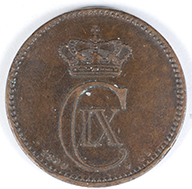 | FC | 24403 | 1875 | DENMARK | 2 Ore | Christian IX | Value above Porpoise and Barley Ear | Bronze | 793.1 | Very Fine | $6.00 | ||||