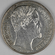 | FC | 22432 | 1851-VS | DENMARK | 1 Rigsbankdaler | Frederik VII | Crowned Arms | 0.88 | 0.4064 | Silver | 743 | Holed Extremely Fine | $145.00 | ||