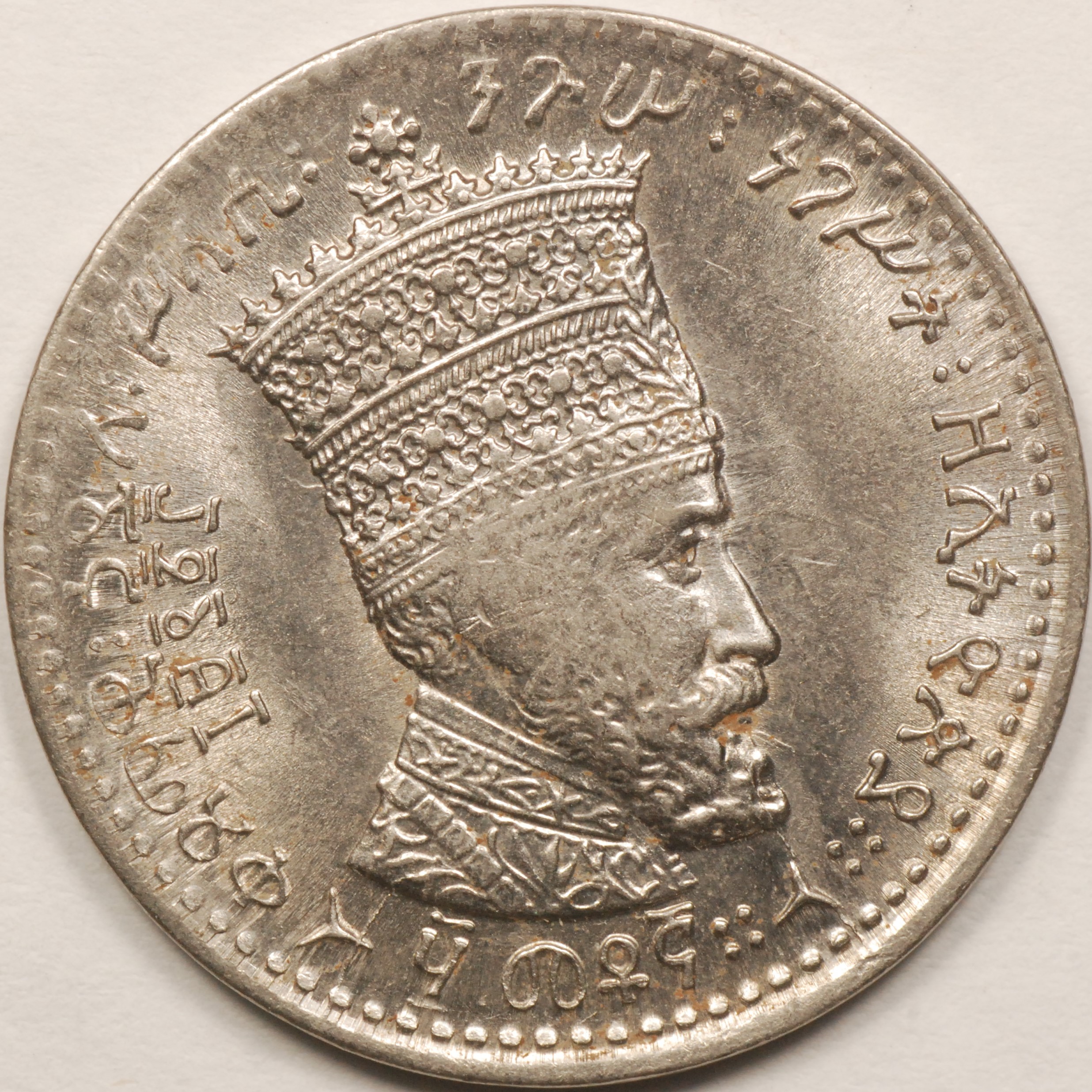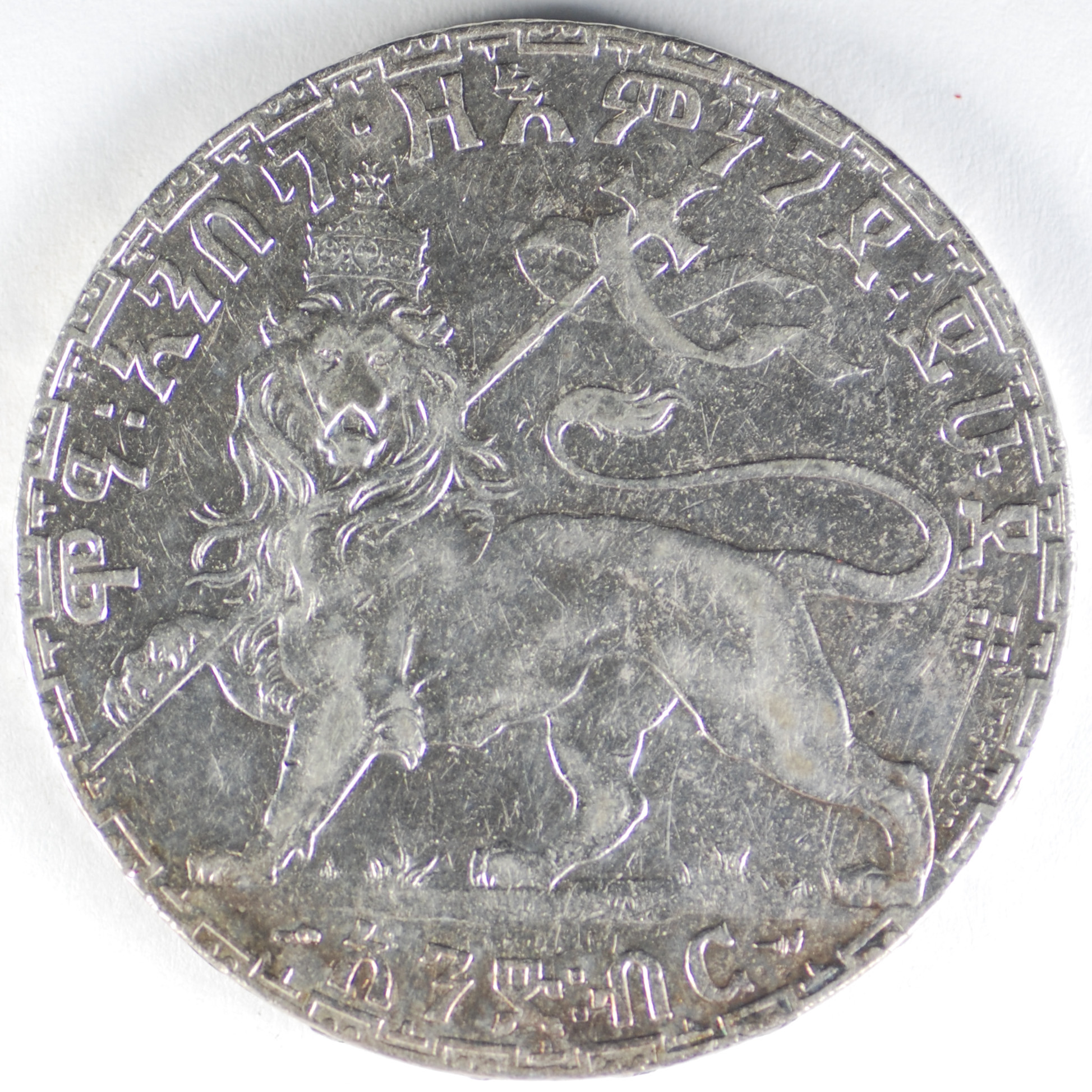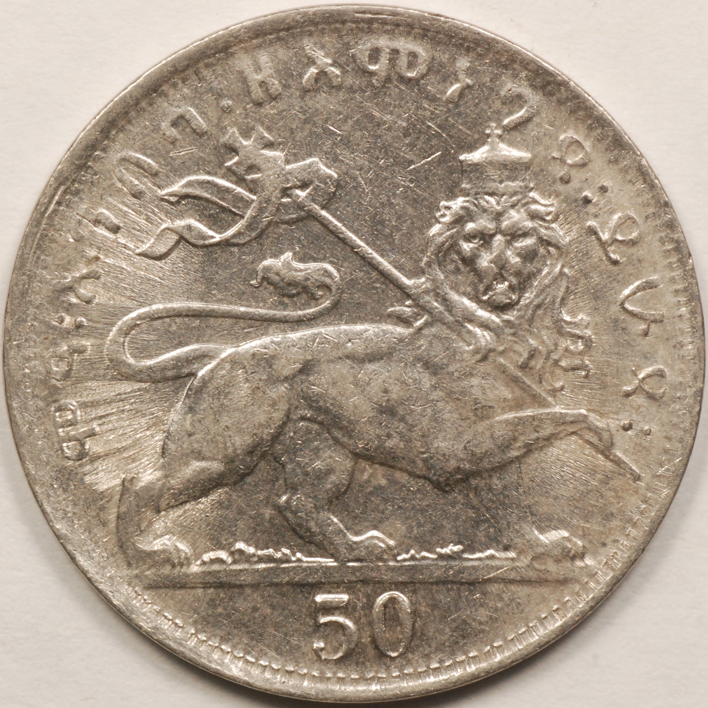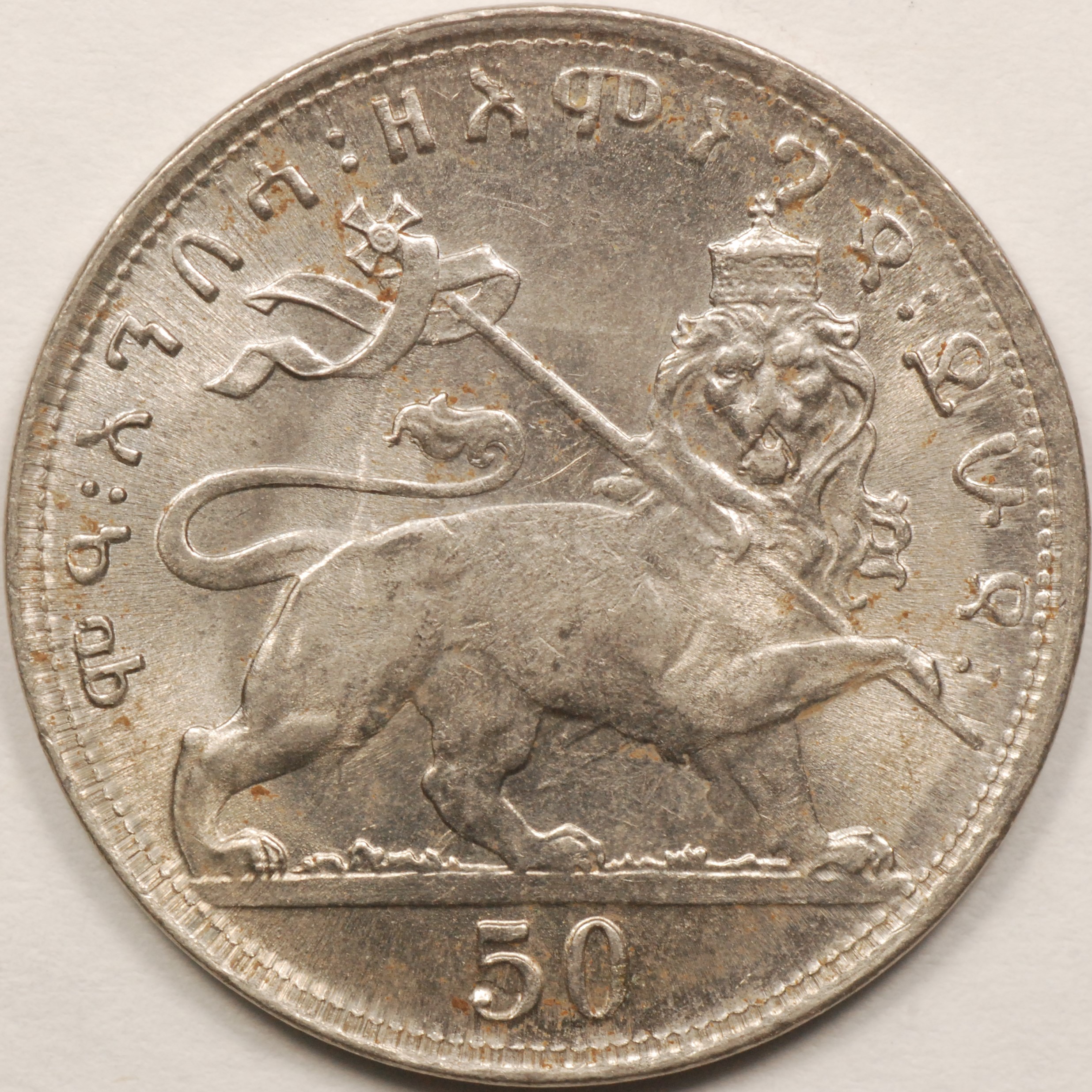 FC | 31890 | EE 1932 (1930-1931) | ETHIOPIA | 50 Matonas | Crowned Head | Right Crowned Lion | 0.700 | 0.1582 | Silver | 31 | MS-65 | $40.00 |