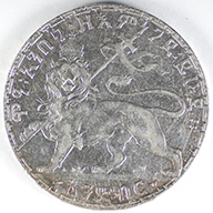 FC | 18975 S | EE1895 (1902-1903) | ETHIOPIA | 1 Birr | Menelik II | Crowned Lion | 0.835 | 0.7488 | Silver | 19 | Extremely Fine | $250.00 |